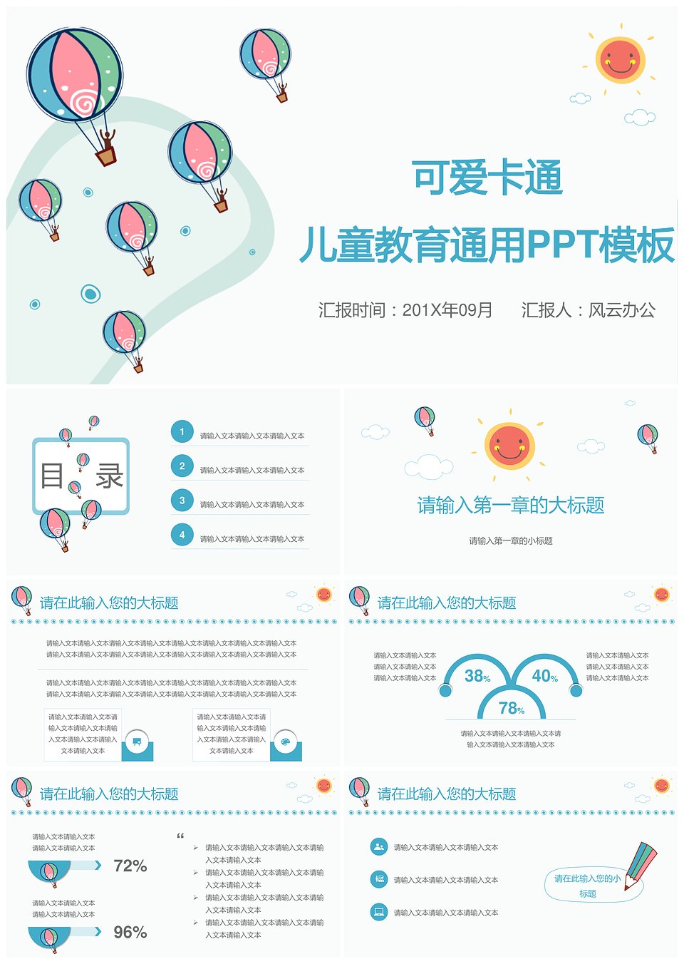 儿童教学放飞梦想手绘儿童卡通PPT模板