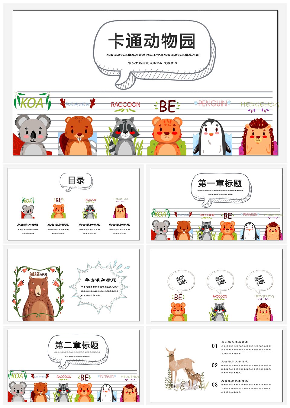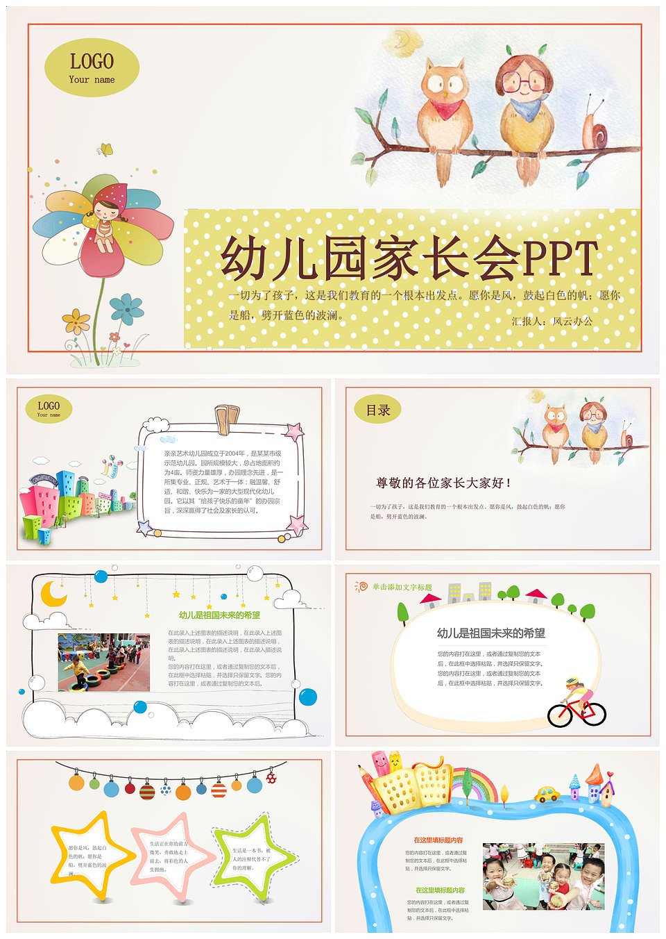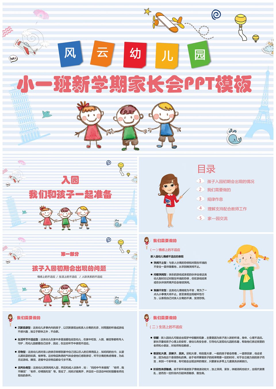 可爱萌萌哒幼儿园开园典礼教育教学动态PPT模板