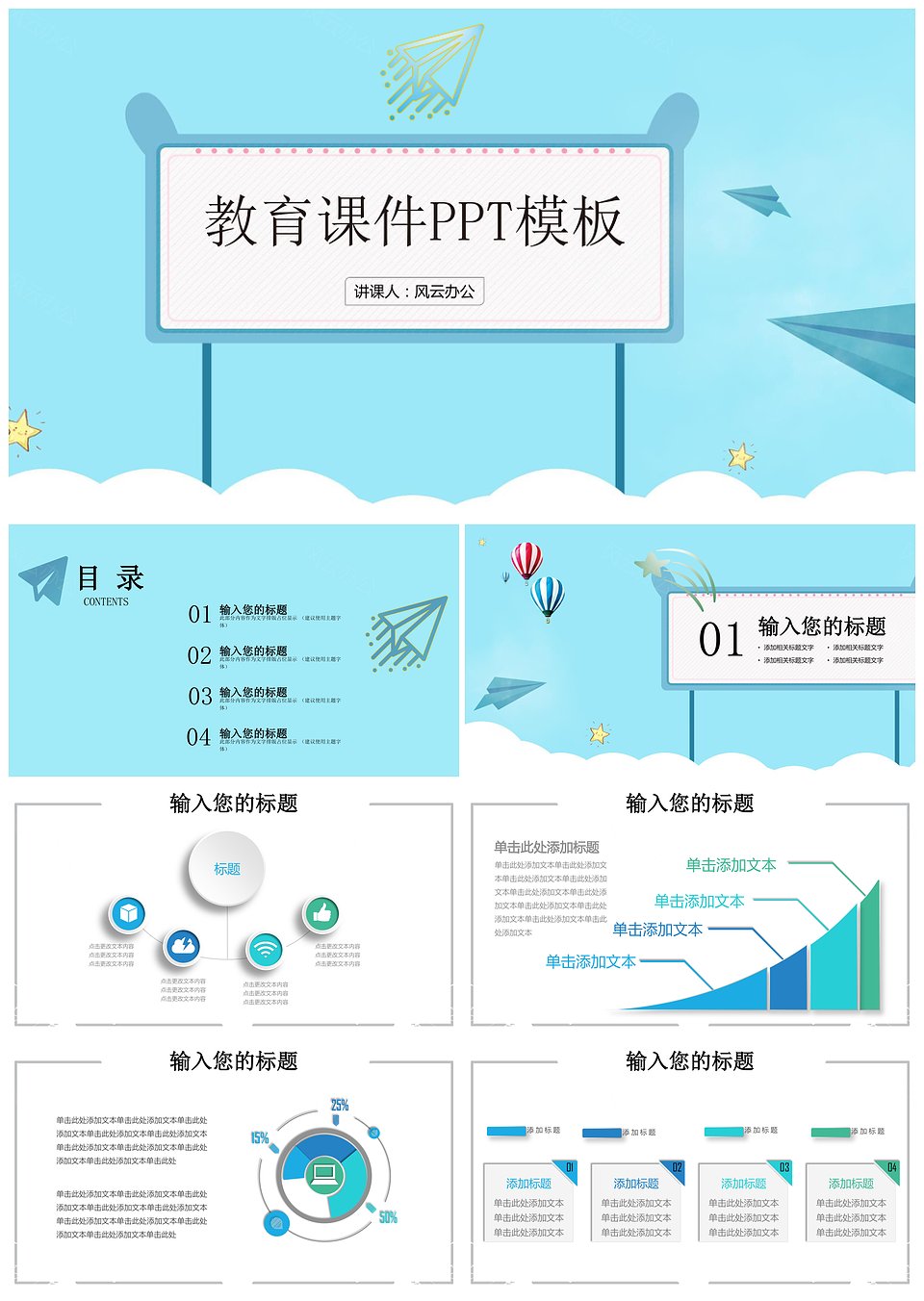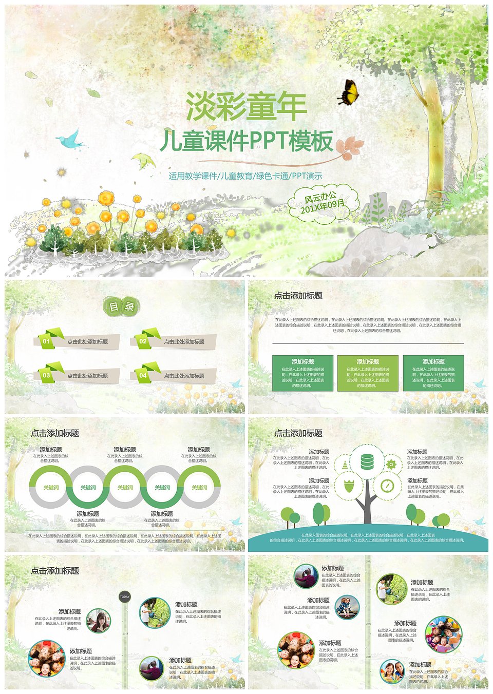 可爱卡通儿童教育儿童节通用课件PPT模板