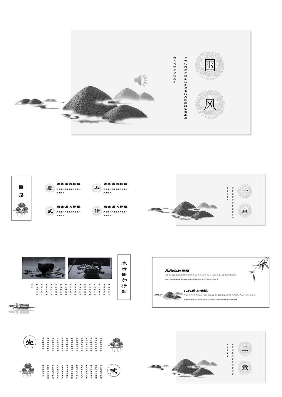 复古黑白意境水墨中国风文化艺术商务通用PPT模板