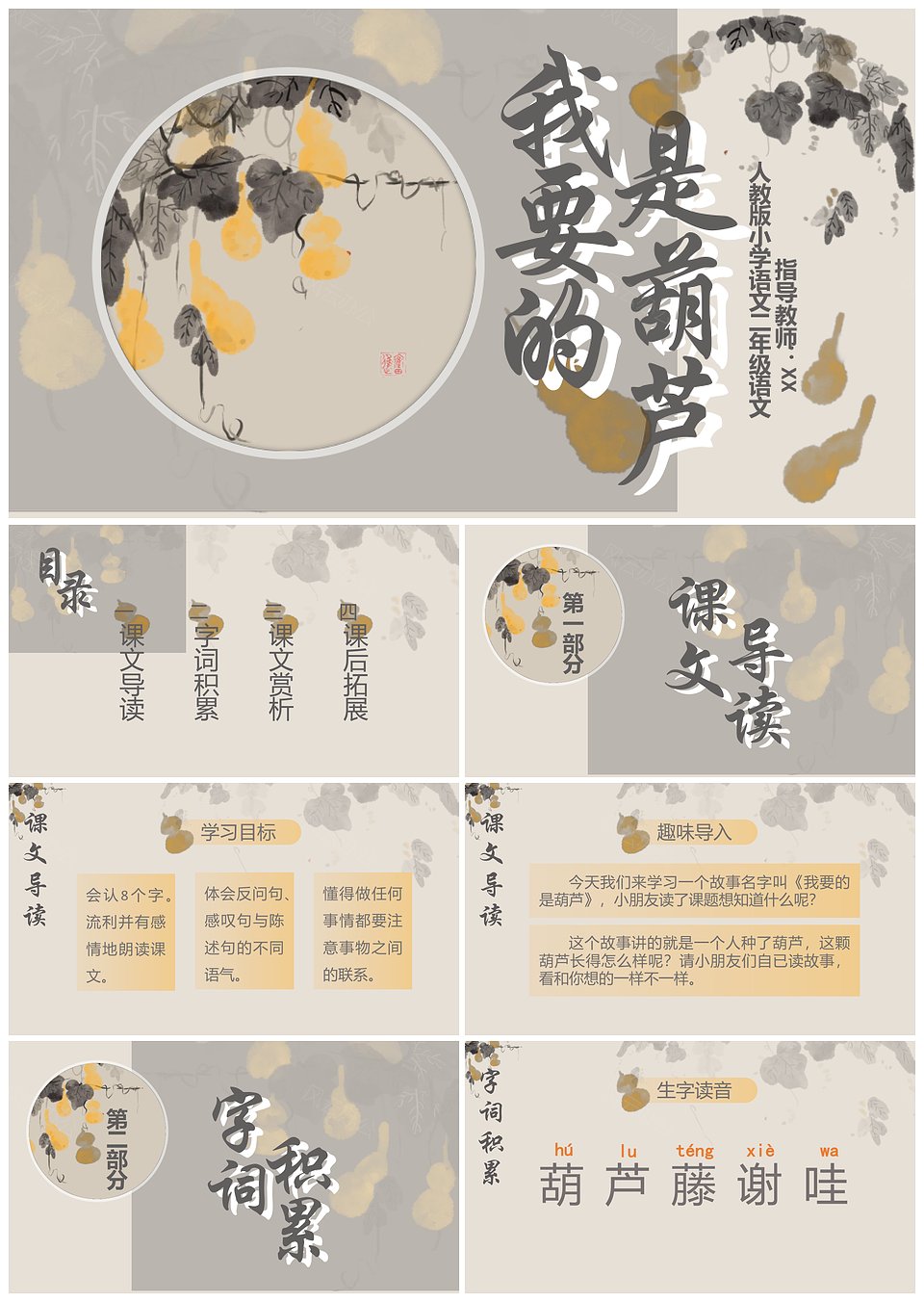 人教版小学语文二年级语文我要的是葫芦PPT模板