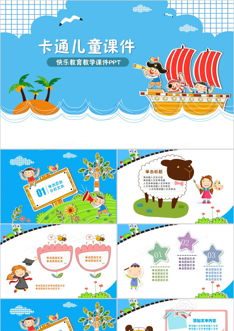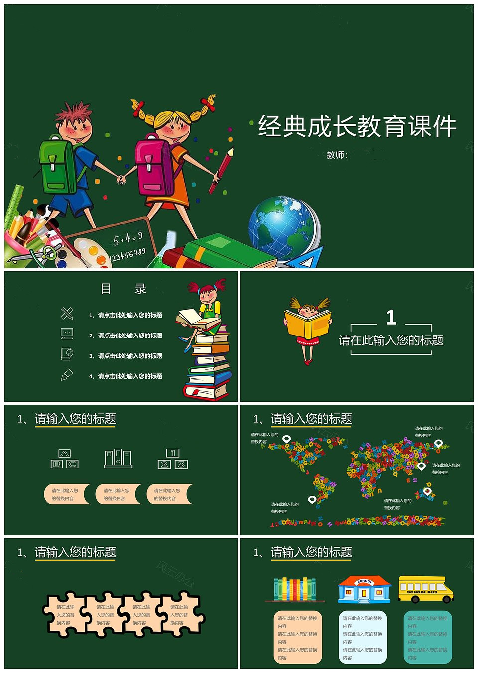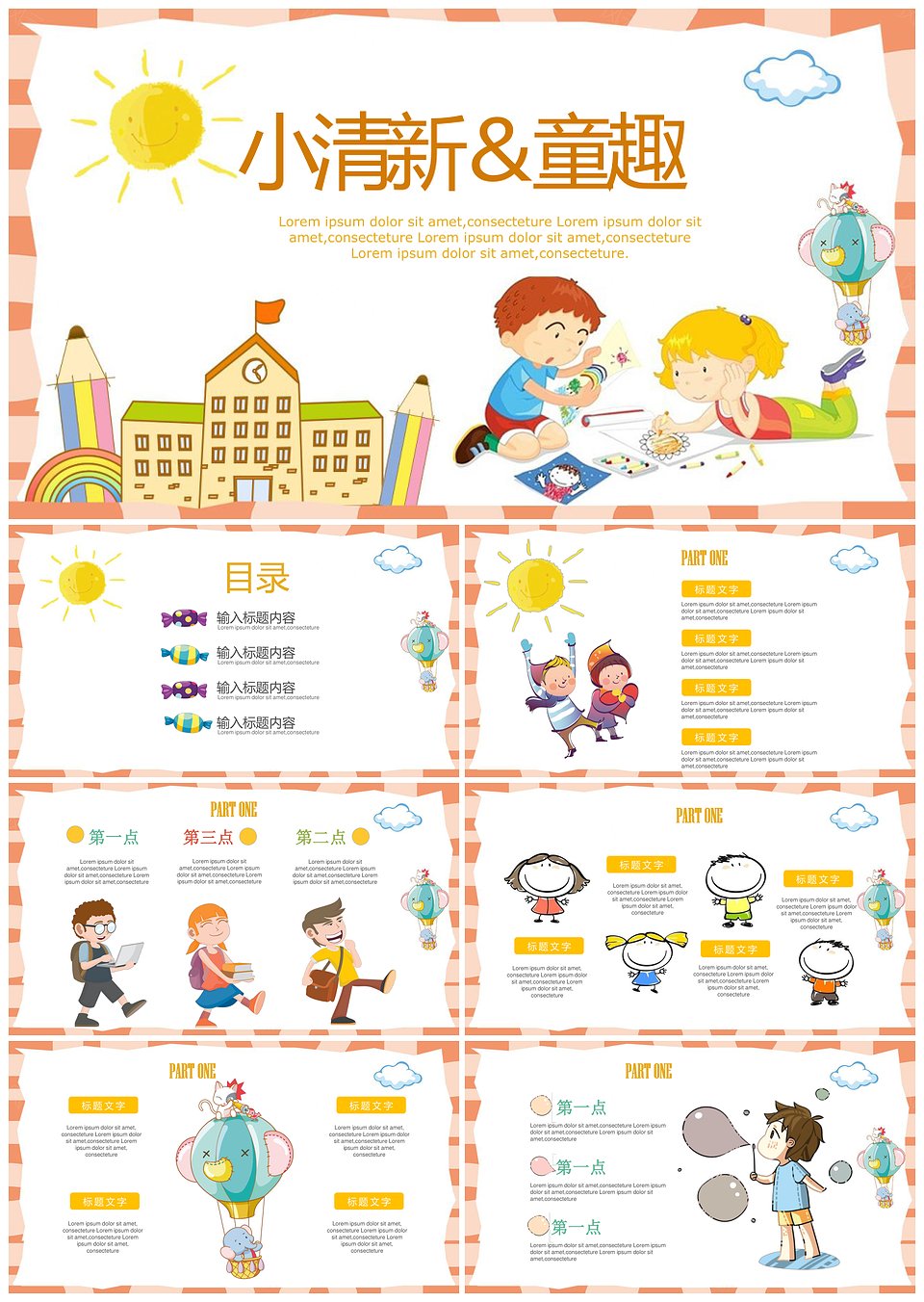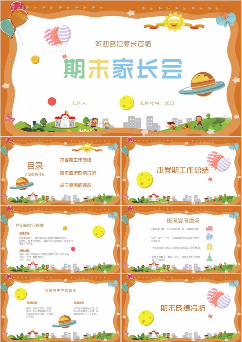 可爱卡通风儿童教育中小学幼儿园下半学期期末家长会PPT模板