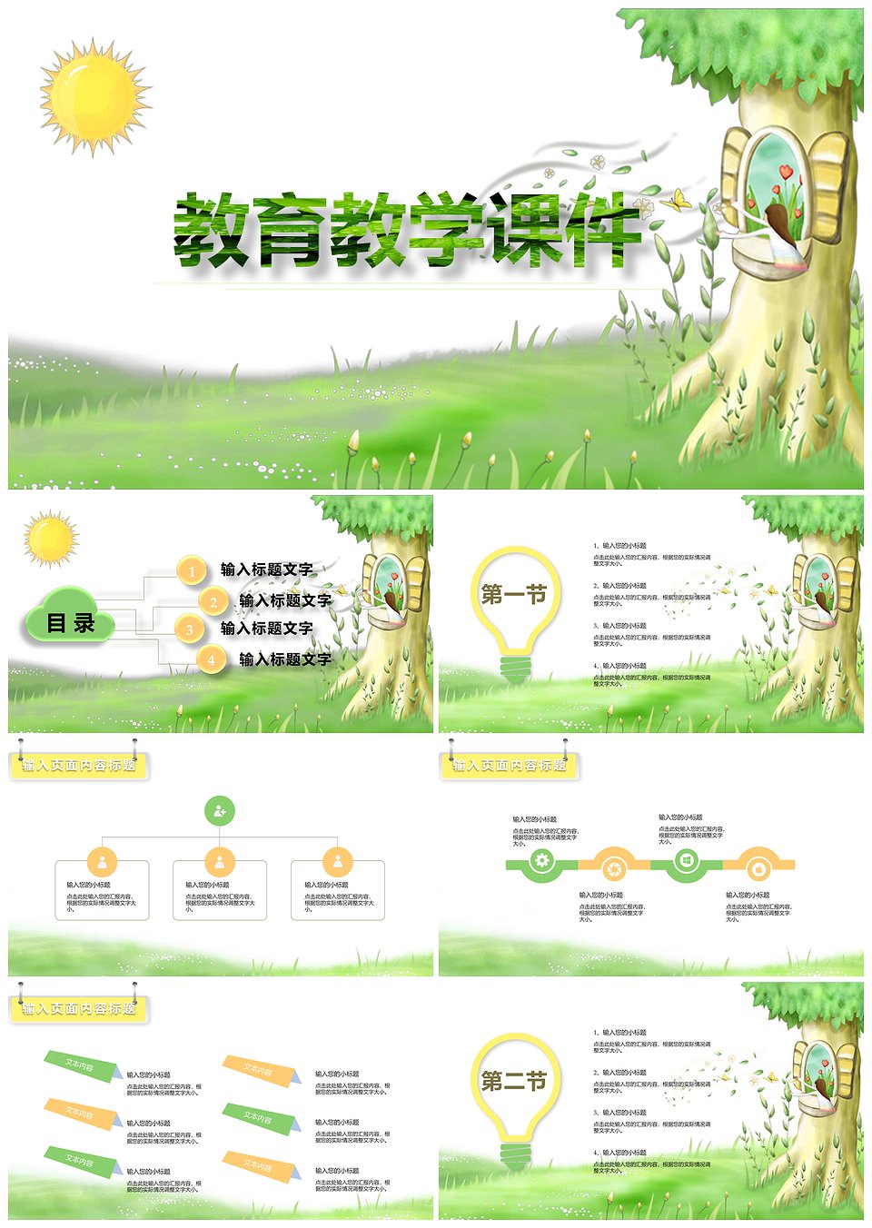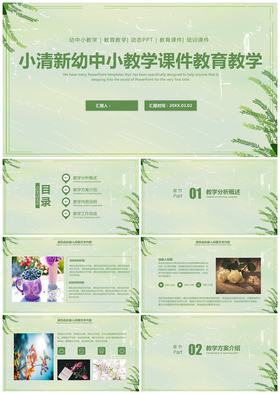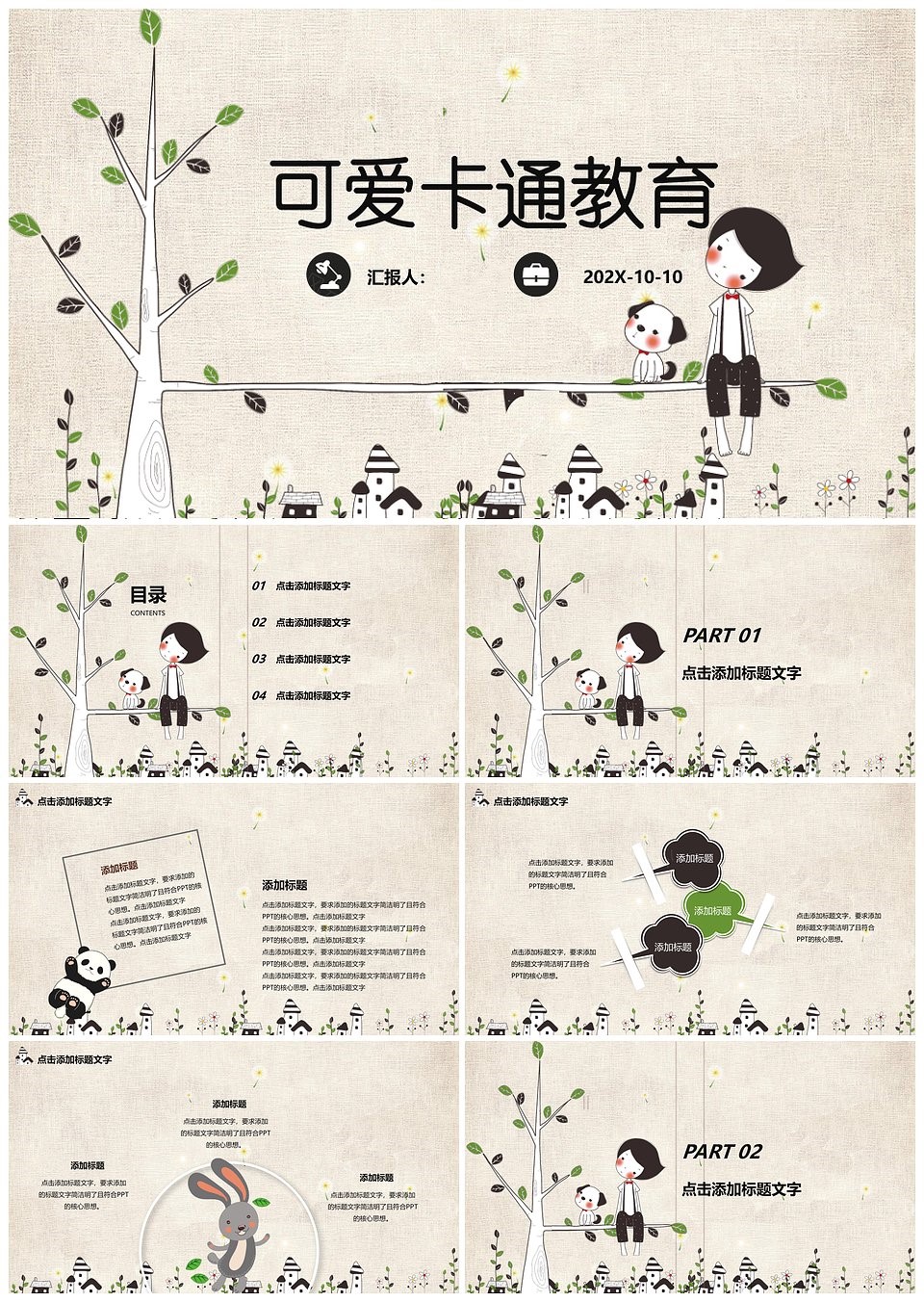 可爱卡通风儿童教育中小学幼儿园下半学期期末家长会PPT模板