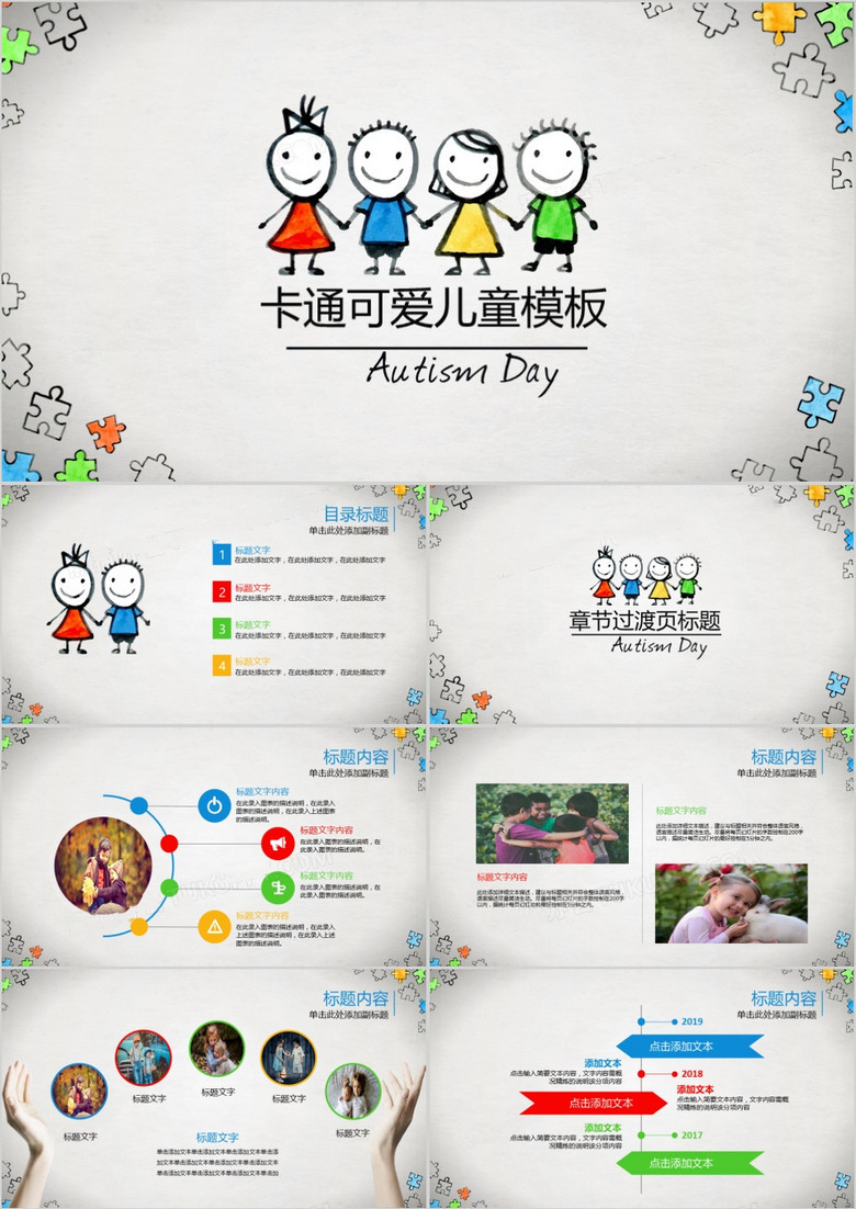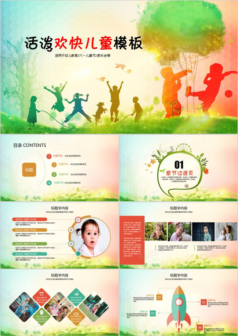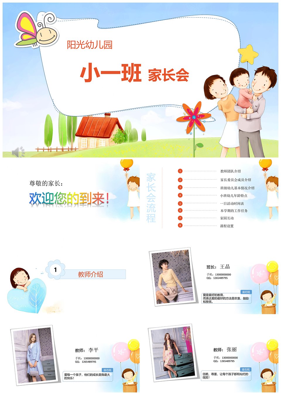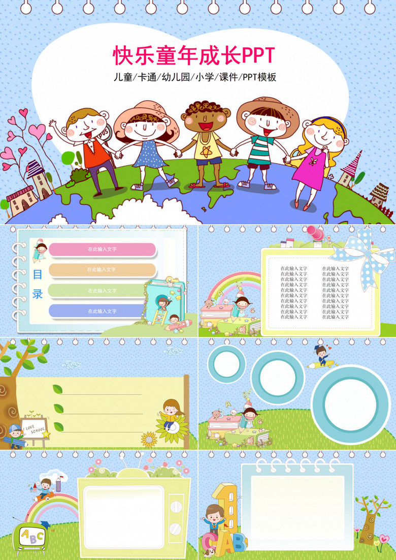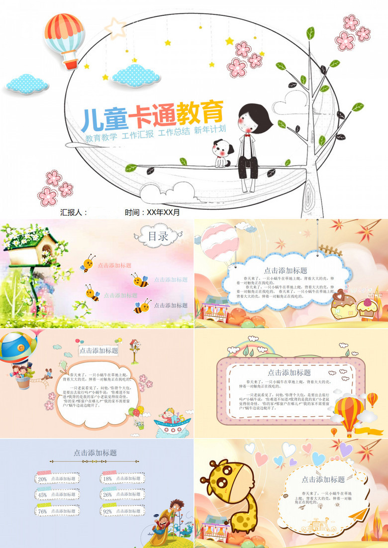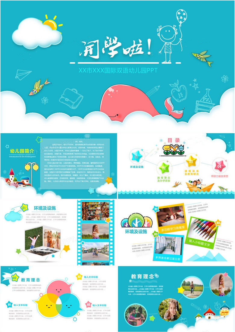 可爱卡通小学幼儿园新学期开学季ppt模板