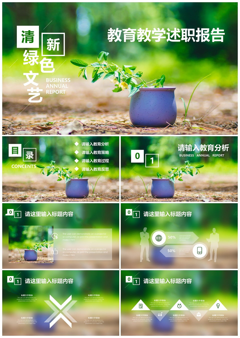 绿叶清新通透文艺教育教学培训述职PPT