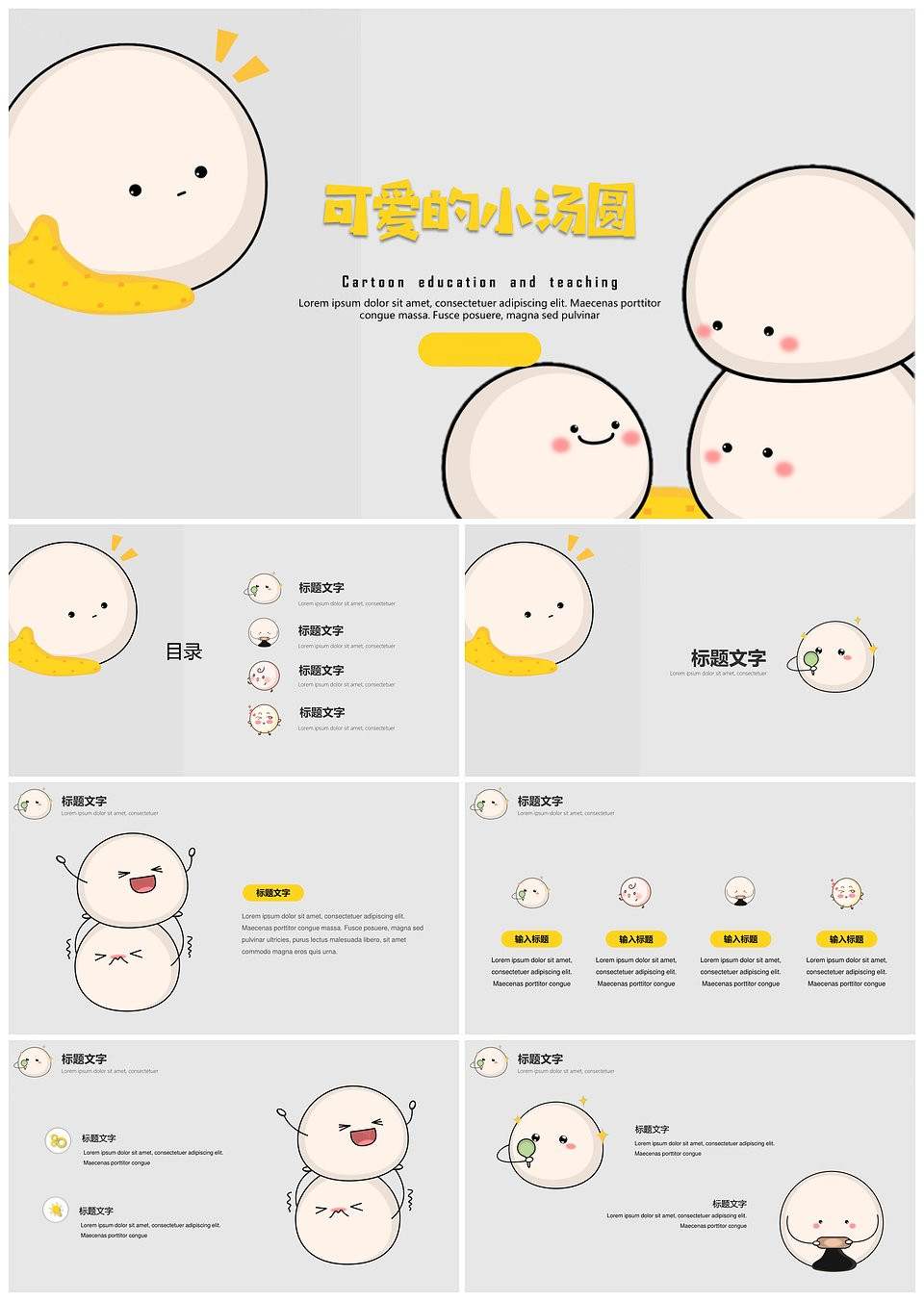 教育教学可爱卡通班会家长会可爱汤圆PPT模板