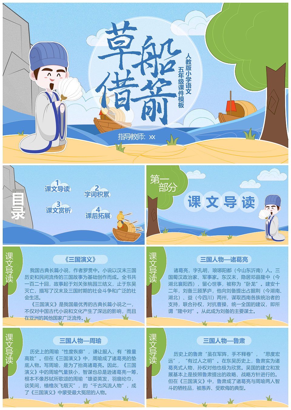 人教版小学五年级语文课件草船借箭PPT模板