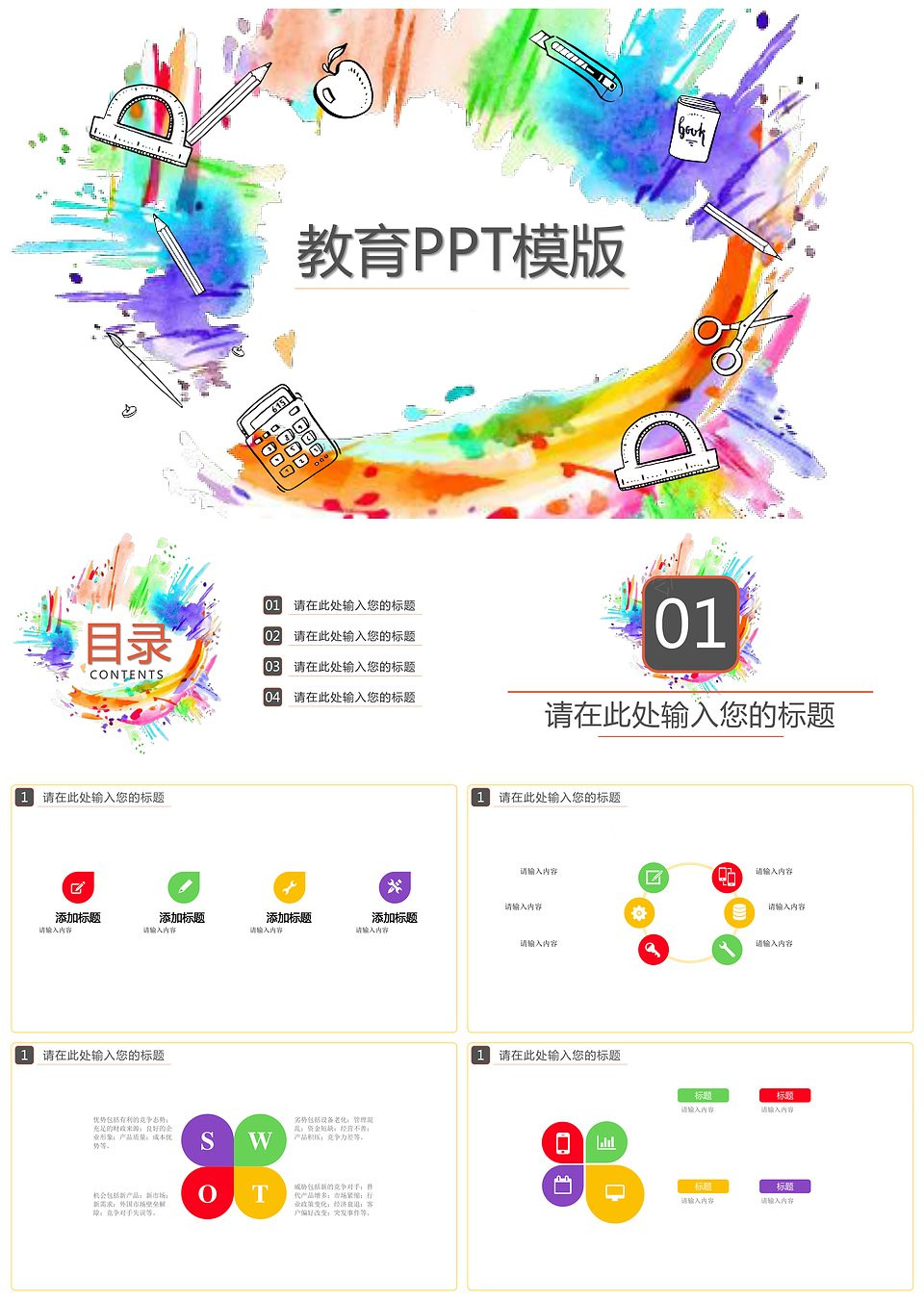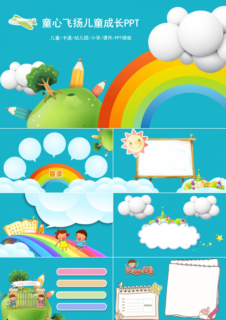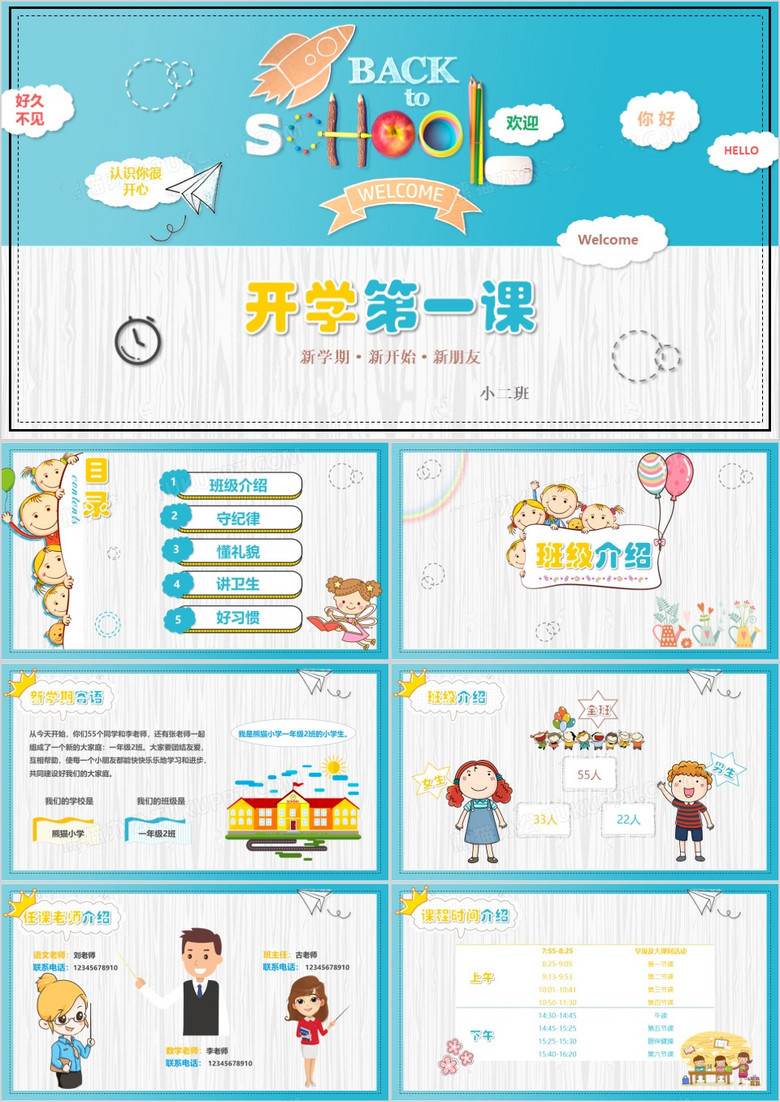 清新卡通可爱儿童小课堂教育教学开学第一课PPT模板
