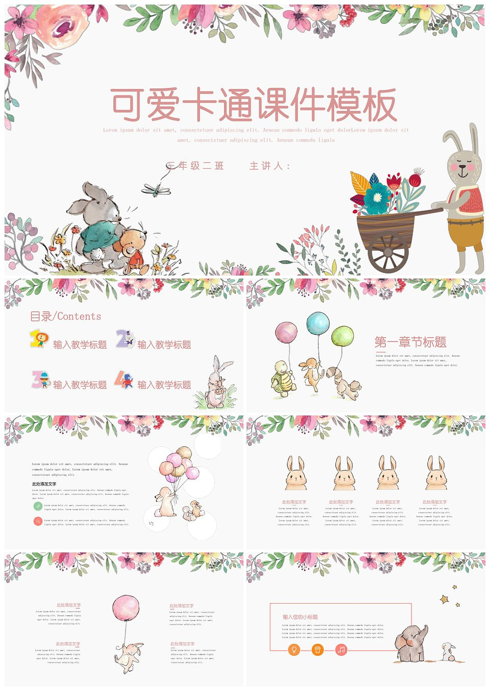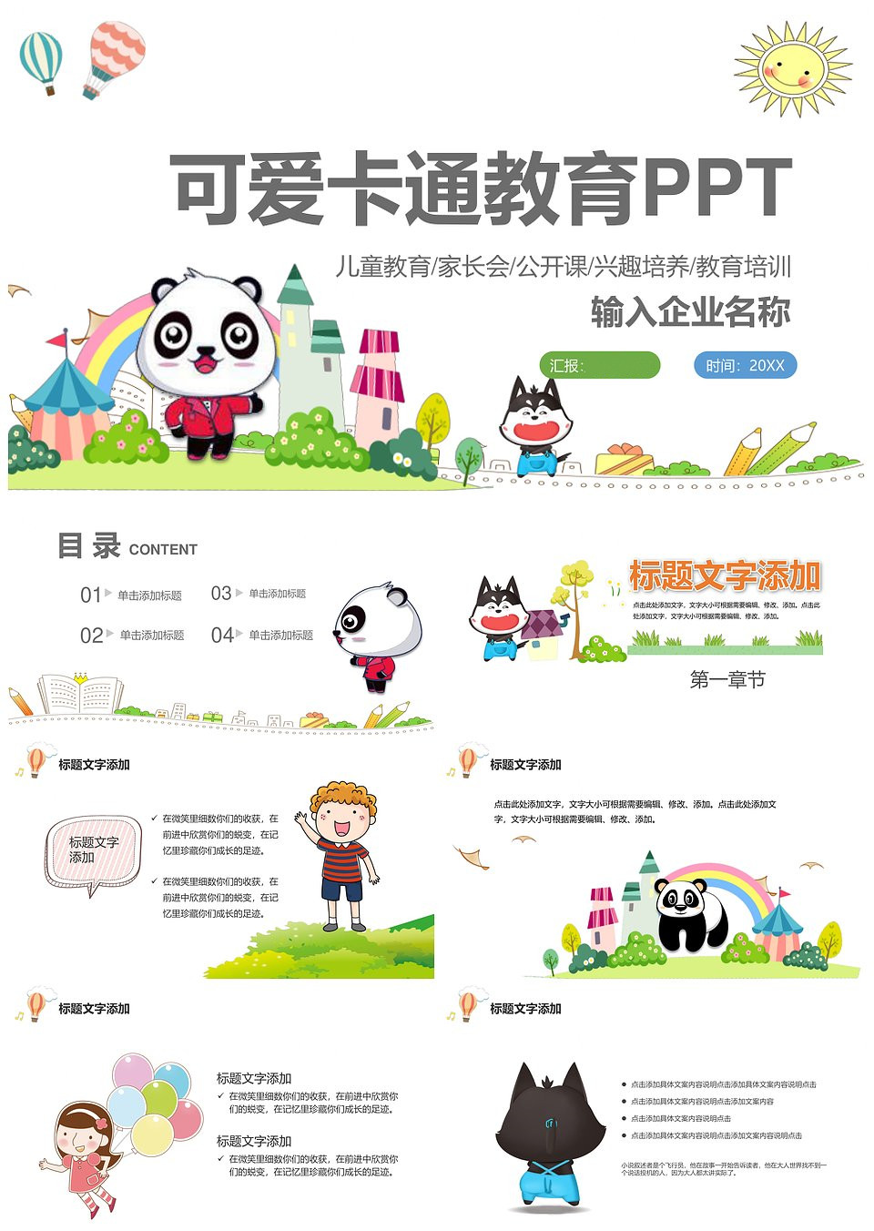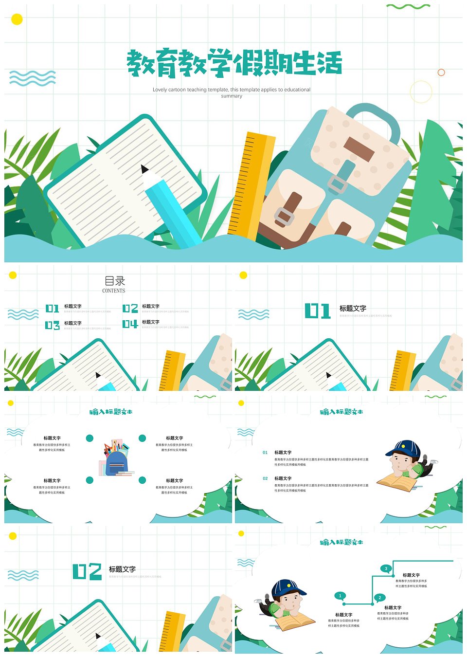 可爱卡通教育教学假期生活班会家长会PPT模板