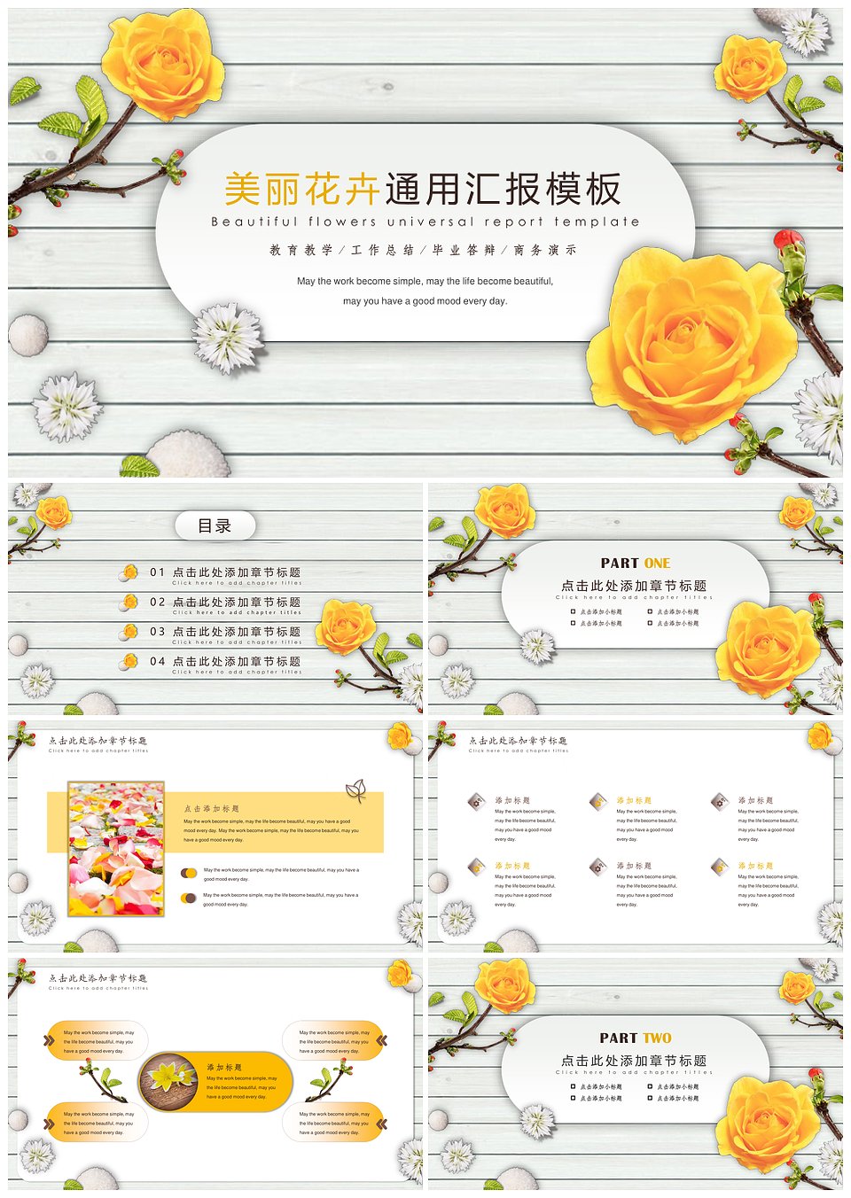 中国风古典清新文雅花鸟绘画风格通用国学主题课件PPT模板