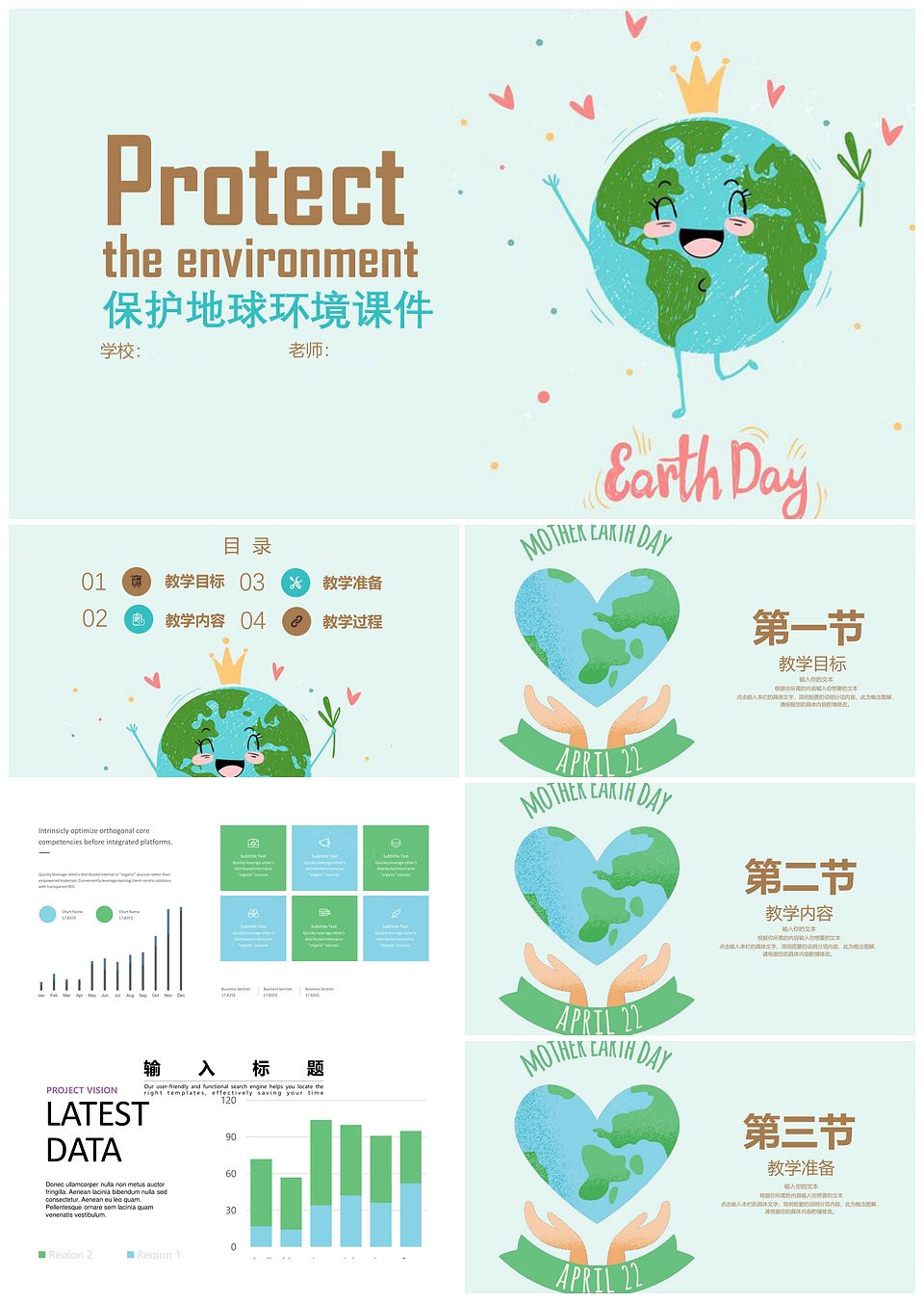 可爱儿童卡通小学幼儿园教师说课教学设计PPT模板