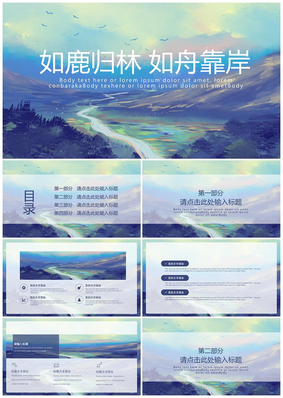 如鹿归林 如舟靠岸小清新文艺通用PPT模