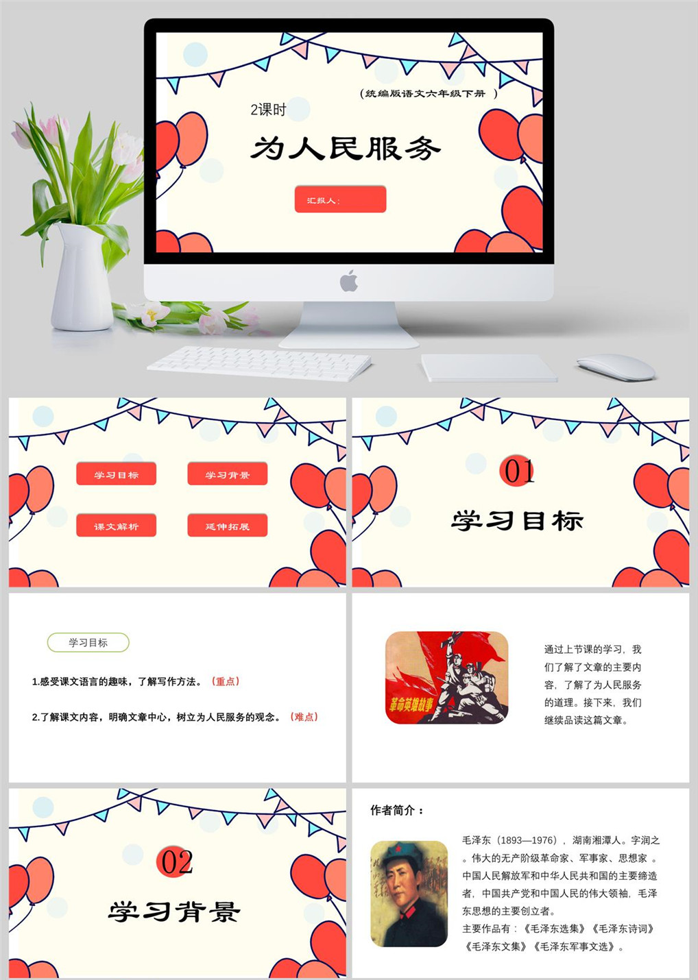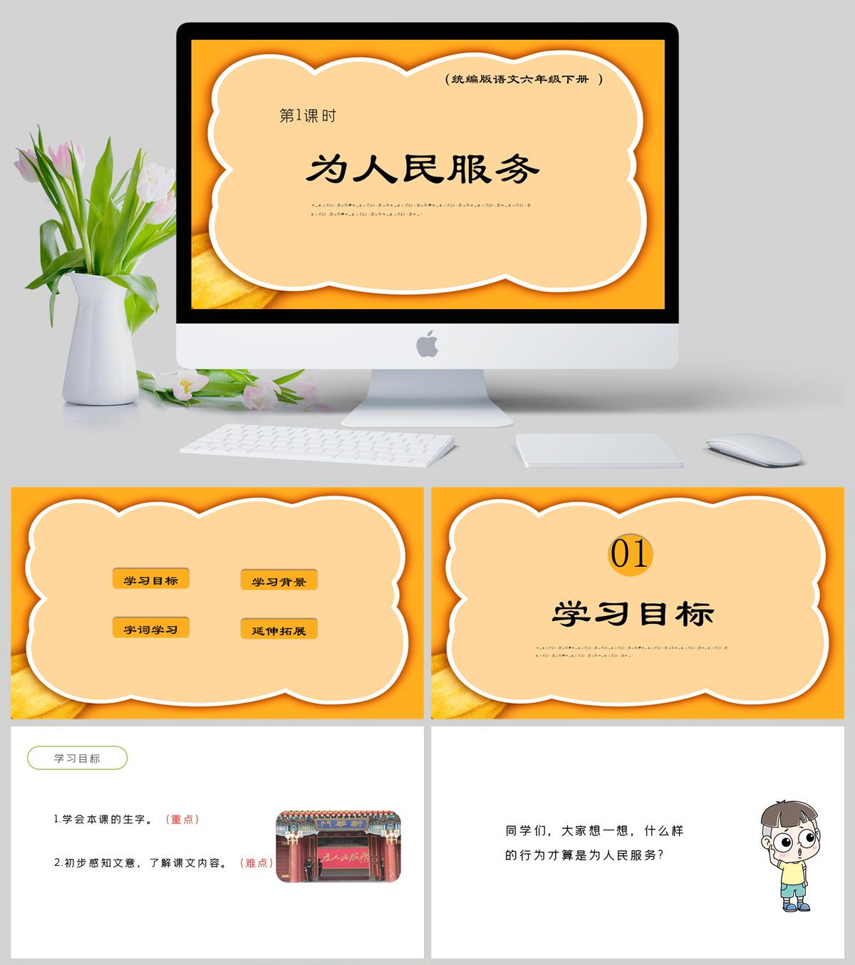 统编版六年级下册语文课件为人民服务第1课时PPT模板