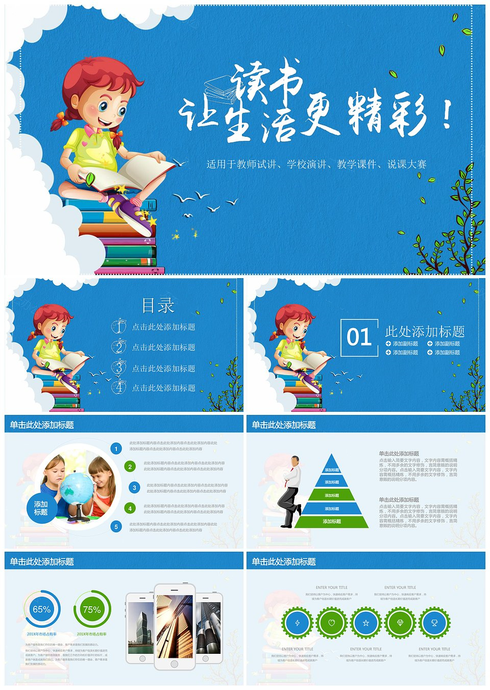 蓝色教育教学公开课工作总结计划动态PPT模板