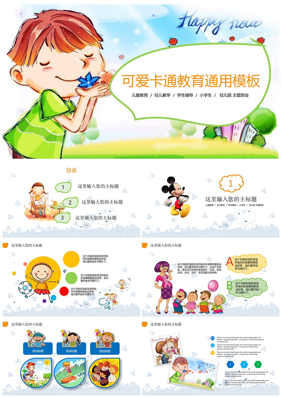 教育教学畅想游乐园可爱班会家长会PPT模板