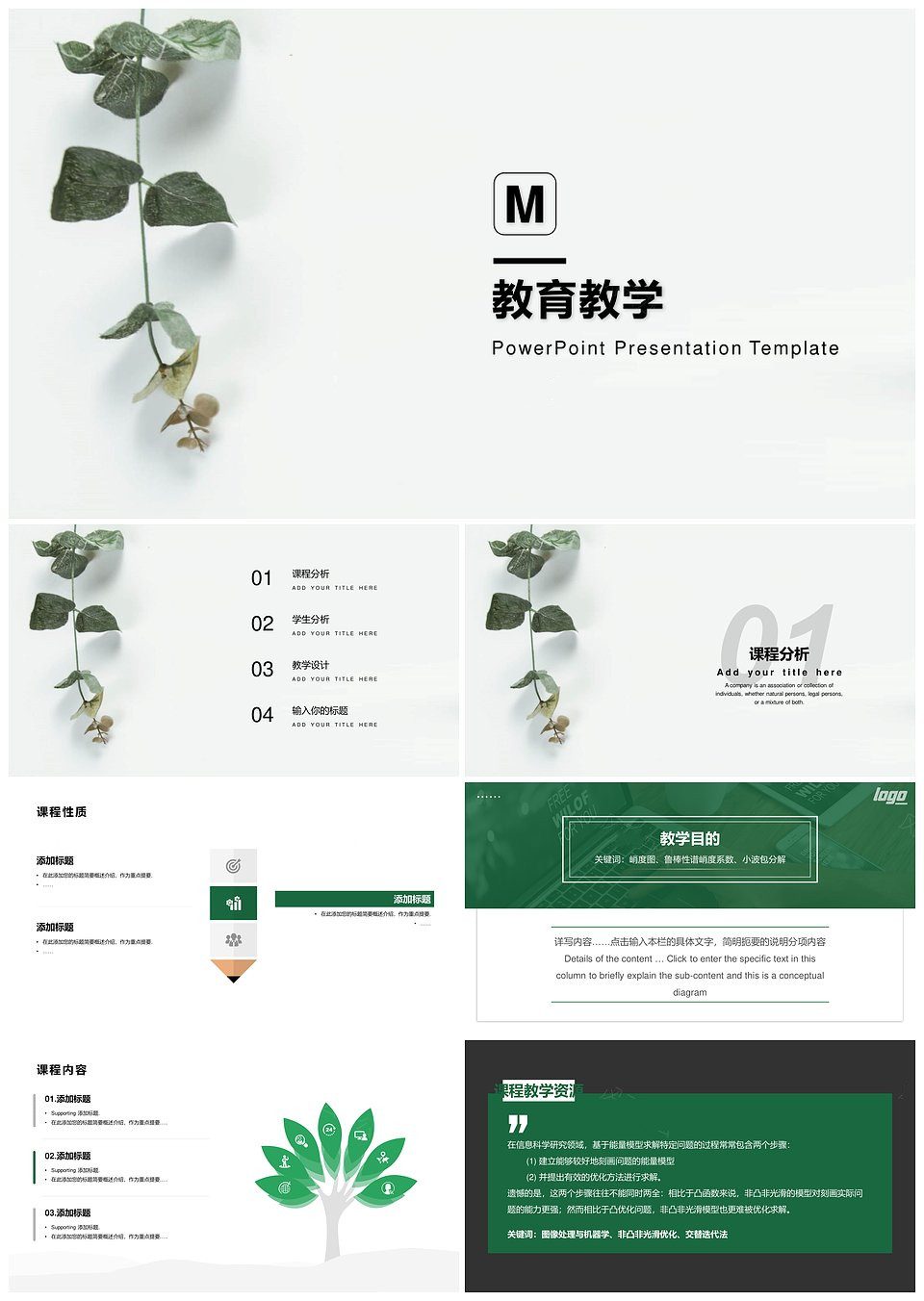 荷叶绿小清新风教育教学
