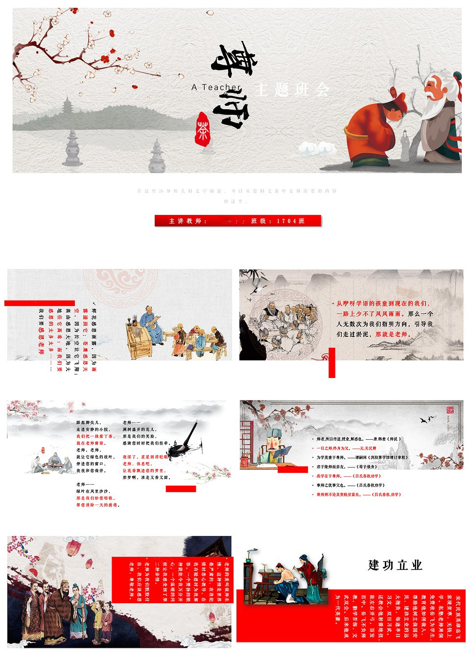 尊师尊敬老师亲爱的老师教育主题课件PPT模板