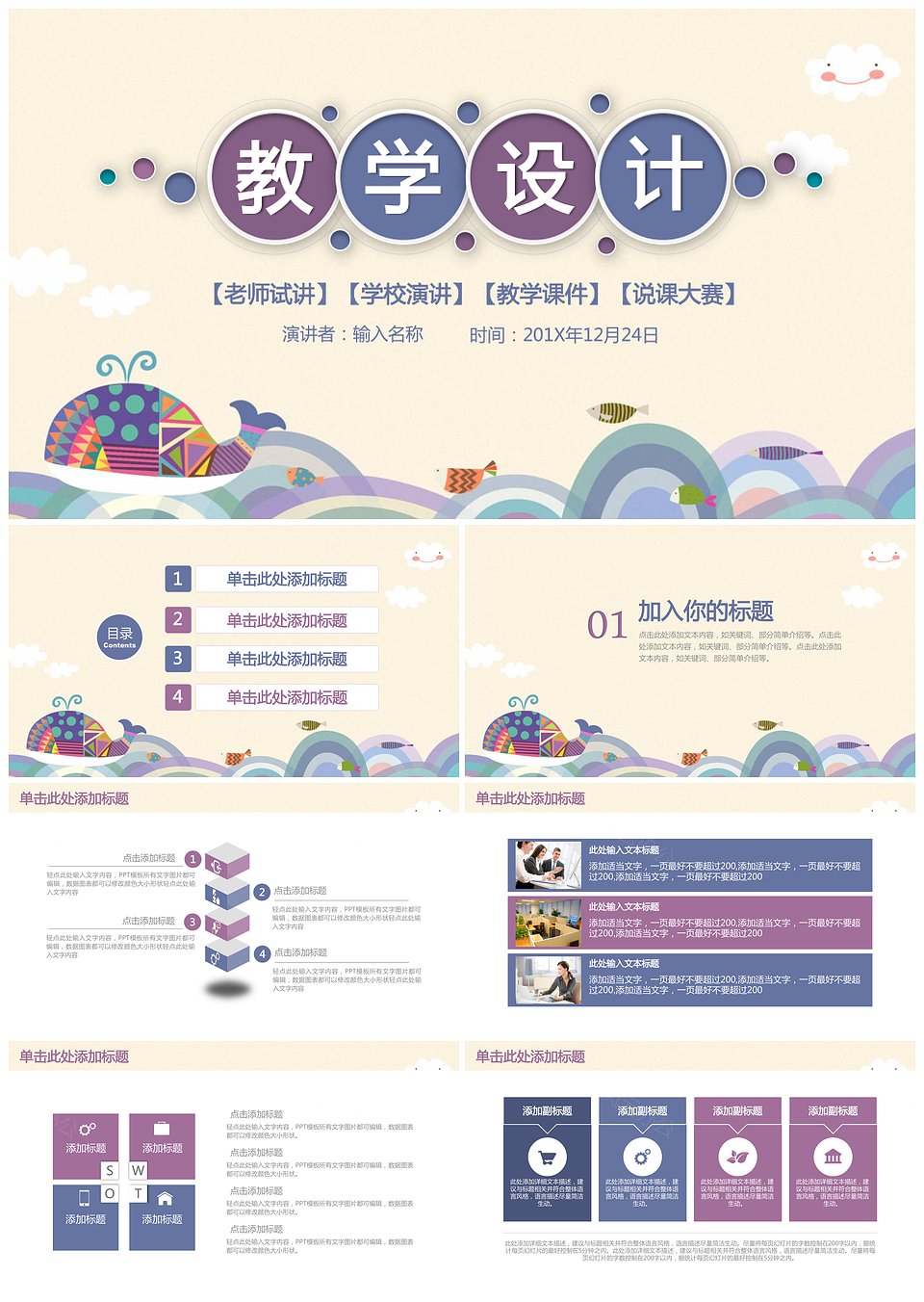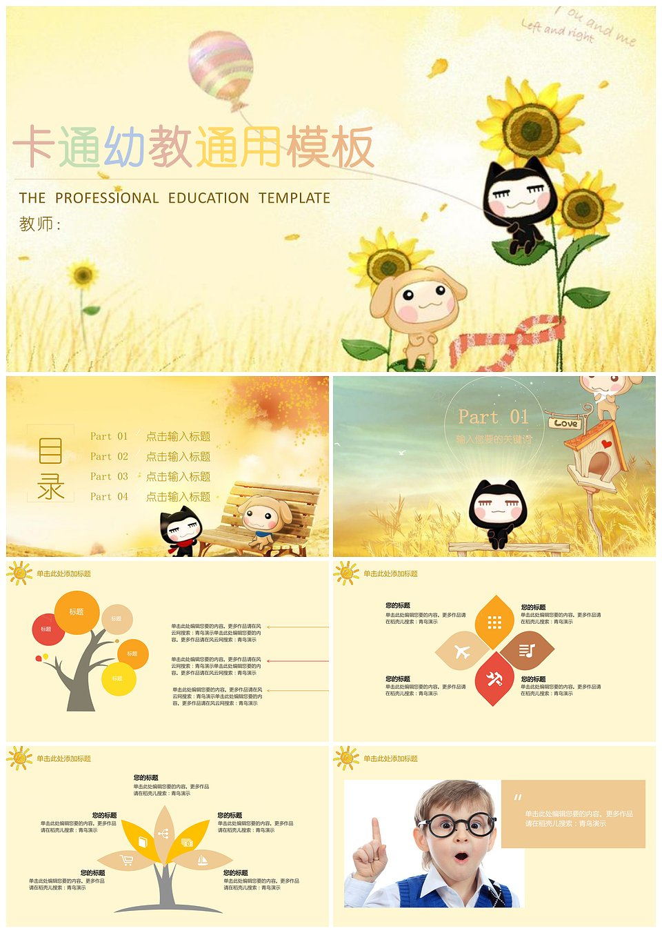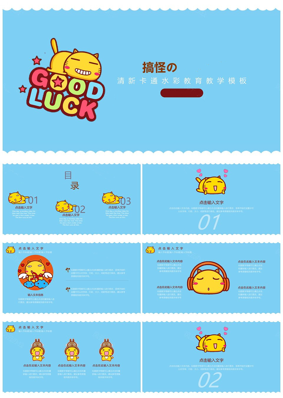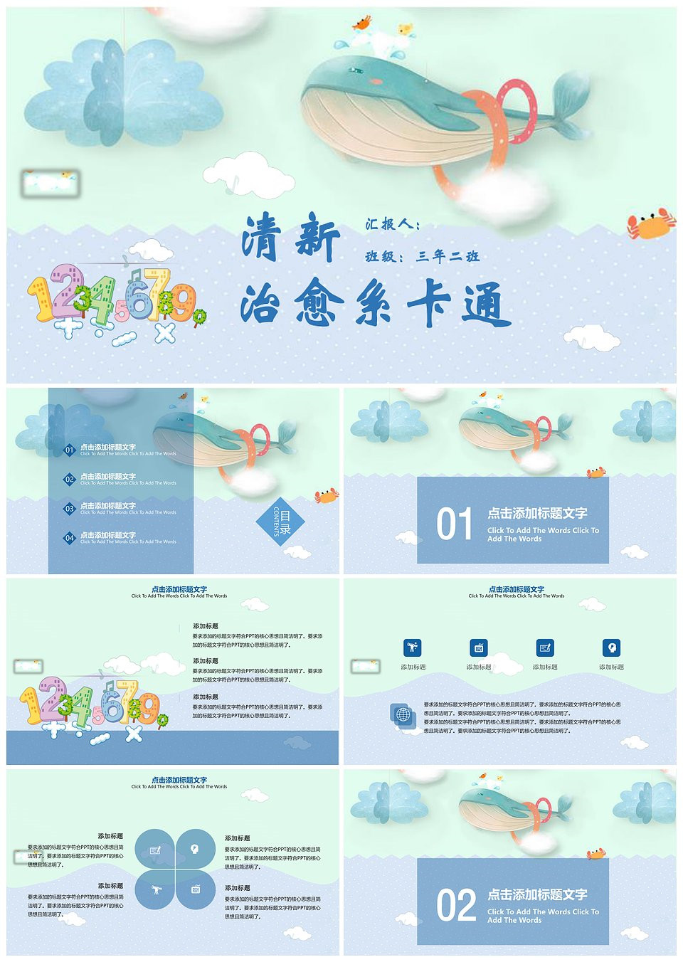 可爱卡通治愈系小清新教育教学商务风培训PPT模板