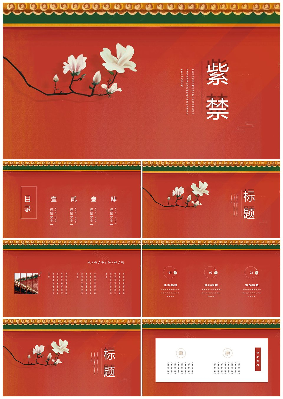 文艺复古中国风紫禁文化建筑年终总结PPT模板