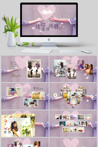 紫色情侣爱情相册恋爱纪念结婚纪念PPT模板下载(带背景音乐)