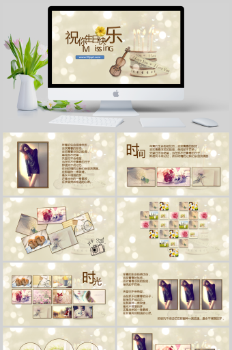 浪漫生日情侣生日快乐通用PPT模板下载(带背景音乐)