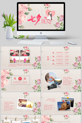 七夕情人节恋爱相册PPT模板下载(带背景音乐)