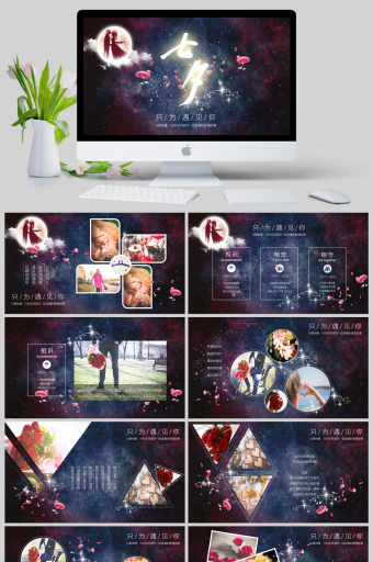 七夕婚礼恋爱主题星空背景相册PPT模板下载(带背景音乐)