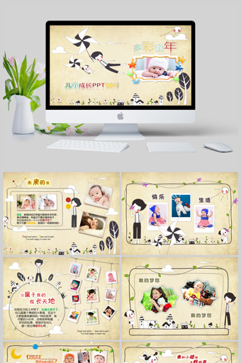 多彩童年儿童成长宝宝满月周年相册PPT模板下载(带背景音乐)