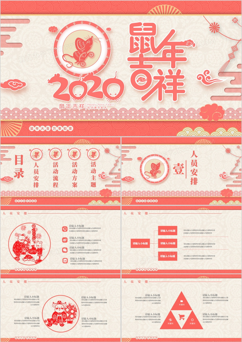 珊瑚红鼠年吉祥活动策划方案PPT模板