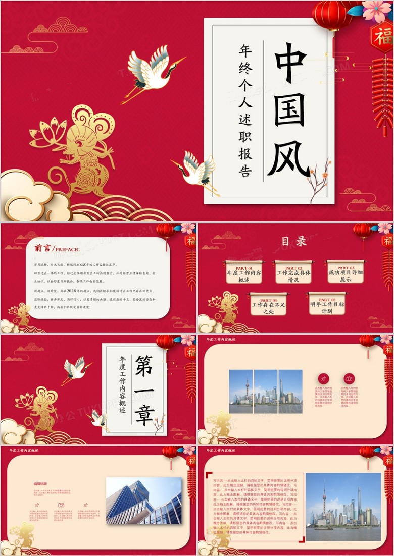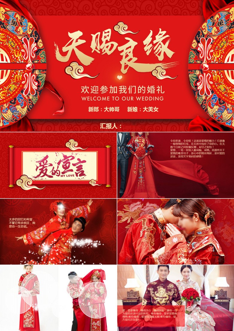 红色喜庆中式结婚婚礼婚庆开场ppt模板