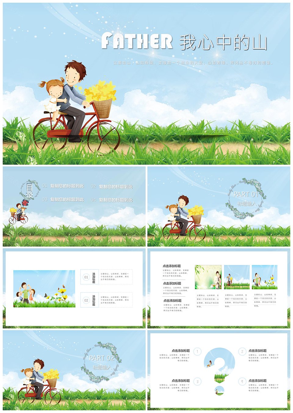 动画绘本父亲节感恩小清新通用PPT模板