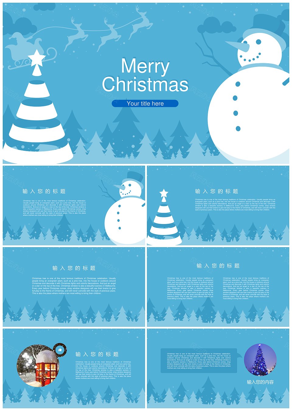 圣诞节雪人工作汇报节日通用PPT-蓝色