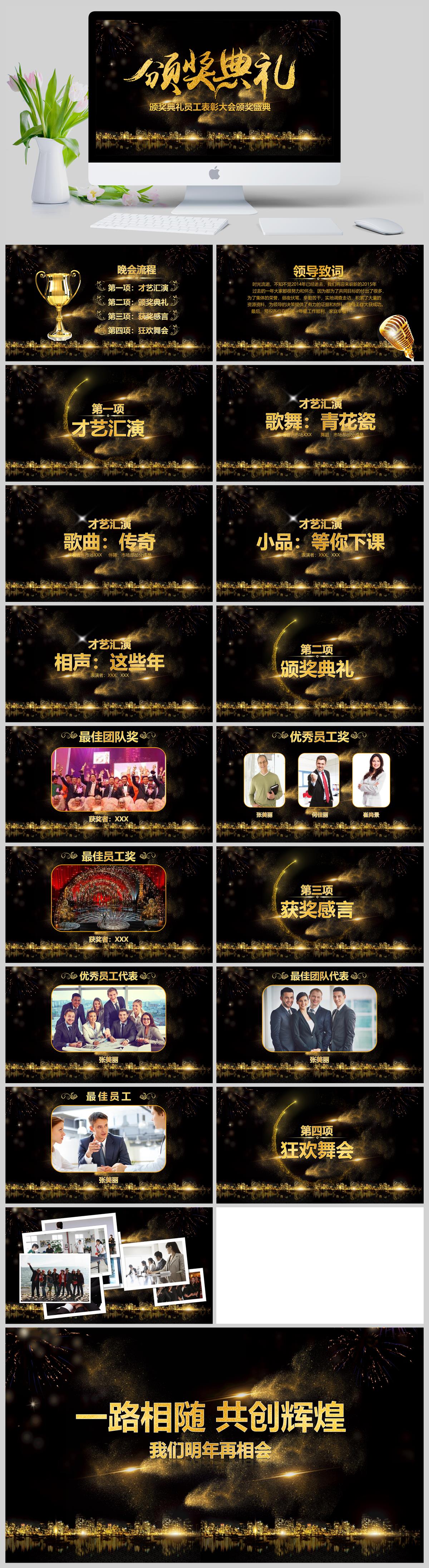 大气年会盛典员工表彰颁奖典礼PPT模板