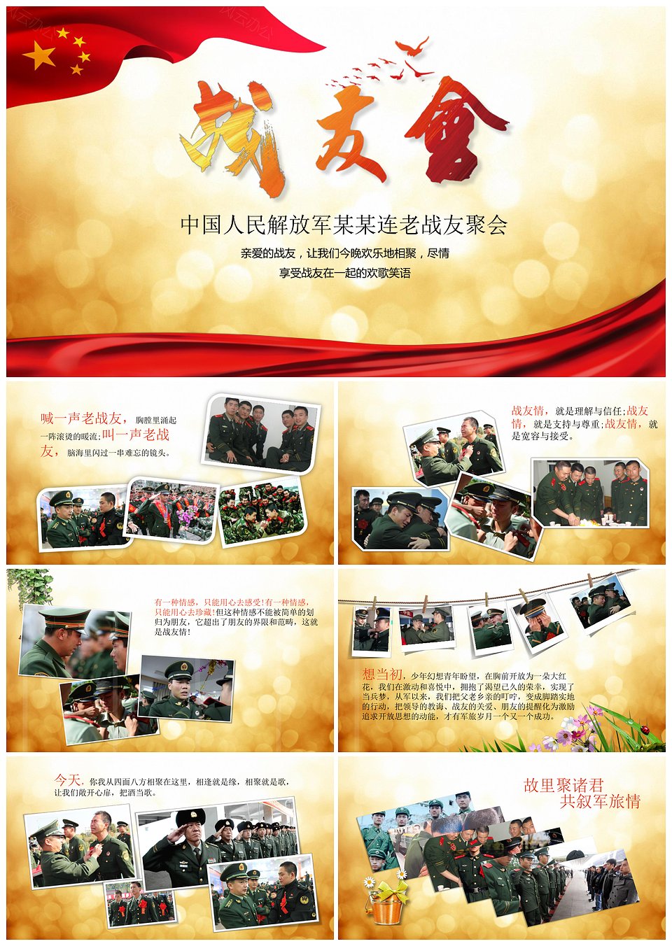 军队退伍部队老兵欢送会电子相册动态PPT模板