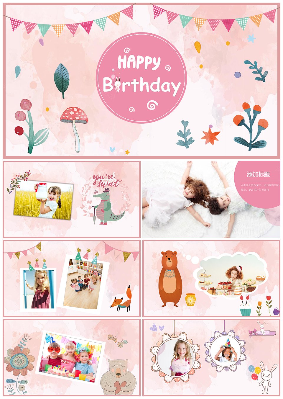 可爱卡通满月酒生日相册成长记录PPT模板