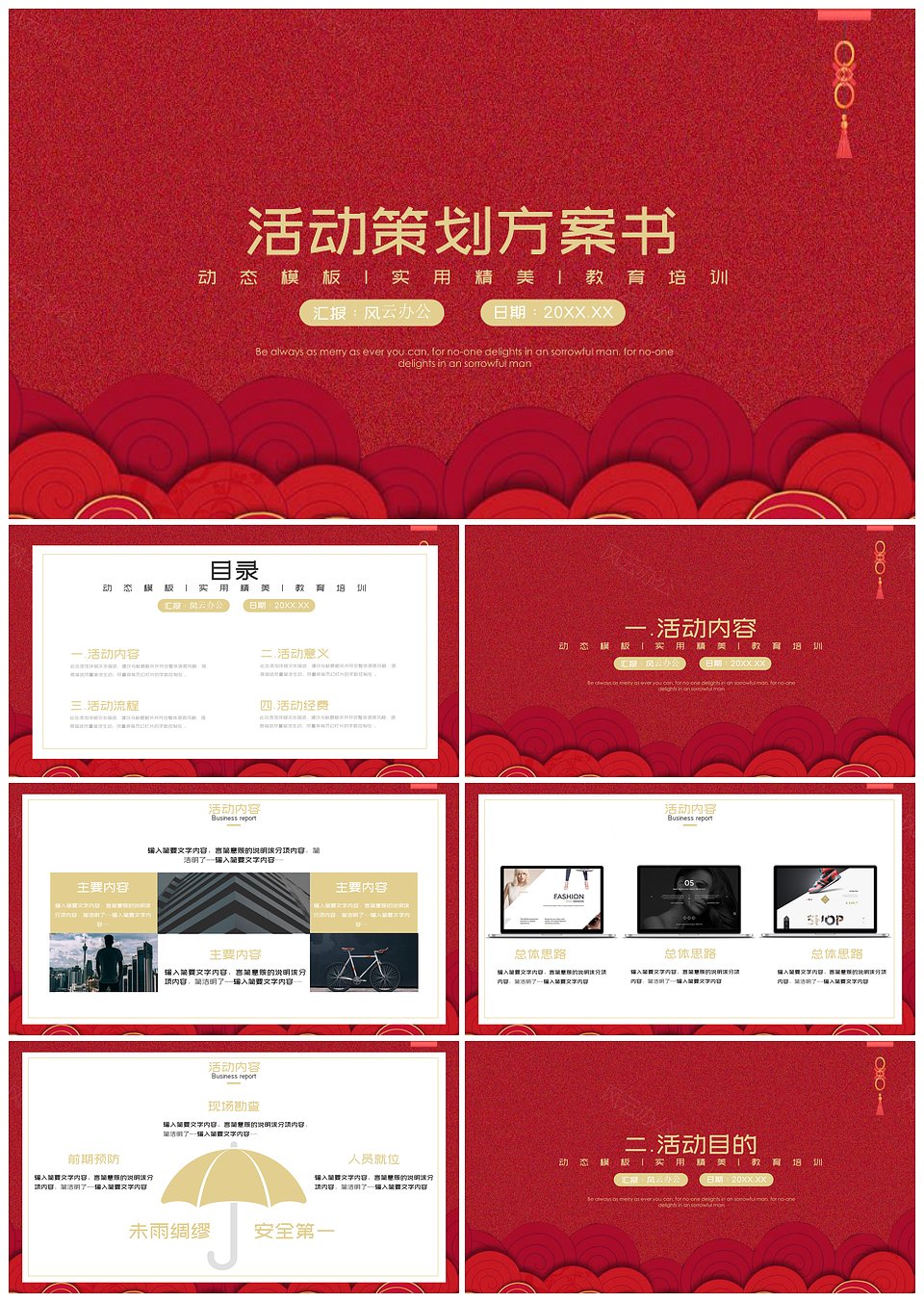 节日庆典活动策划计划书精美红色PPT模板