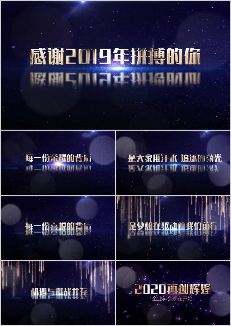 蓝色酷炫风企业年终晚会开场片头PPT模板