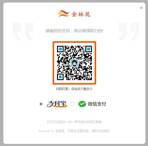 jQuery点击弹出支付宝微信二维码扫码打赏