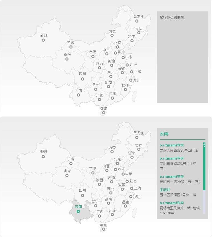 jquery ajax仿十月妈咪官网点击地图上面的城市显示商家网点分布