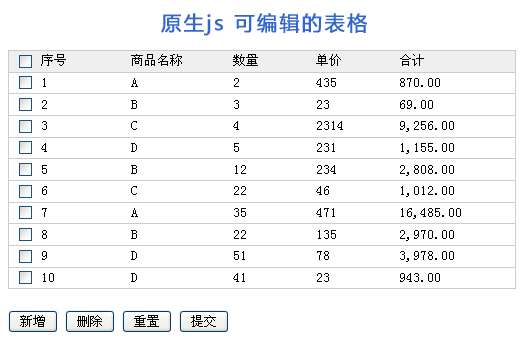 原生js可编辑表格实现动态添加表格行数和删除表格行数