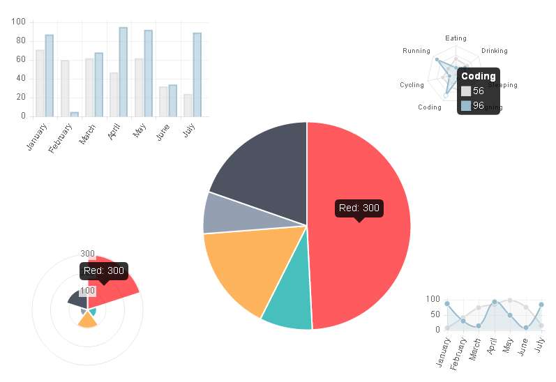 chart.js图表控件绘制饼状图/曲线图/走势图数据显示代码