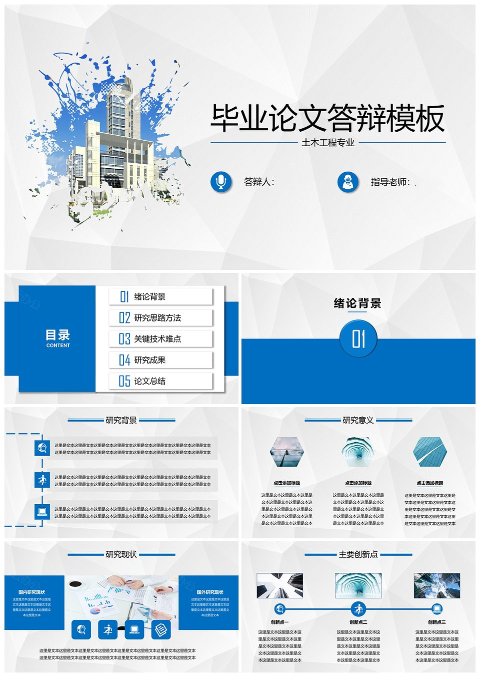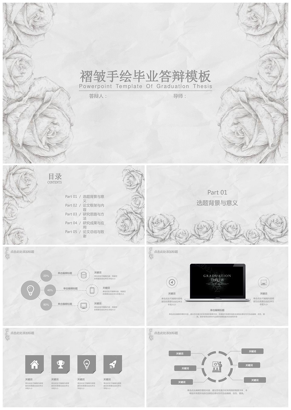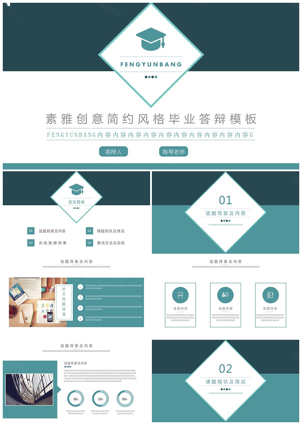 清新商务别工作答辩提案通用PPT模版(送素材)