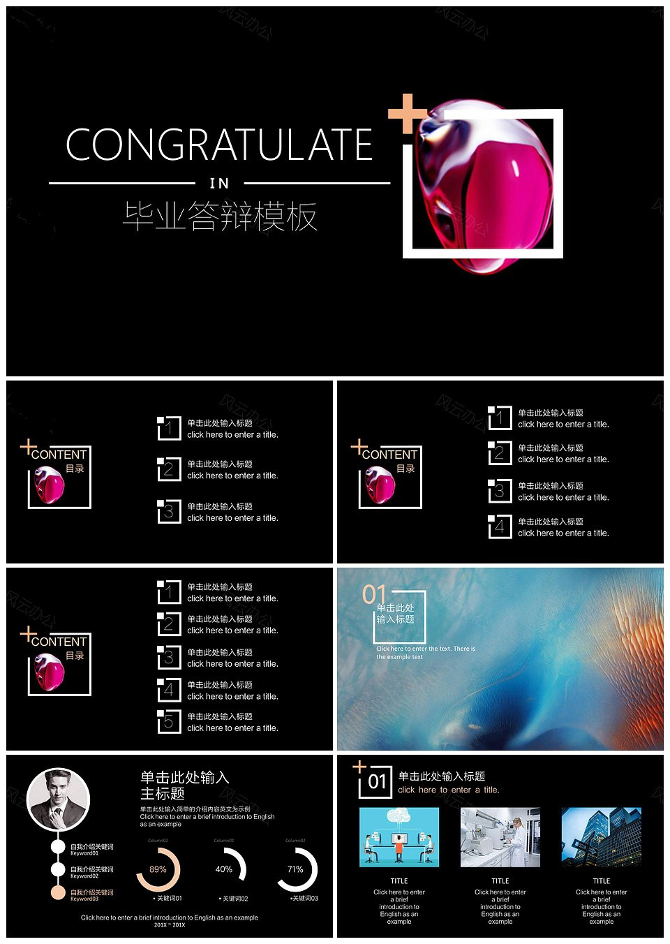 红水晶毕业答辩毕业汇报商务通用PPT模板
