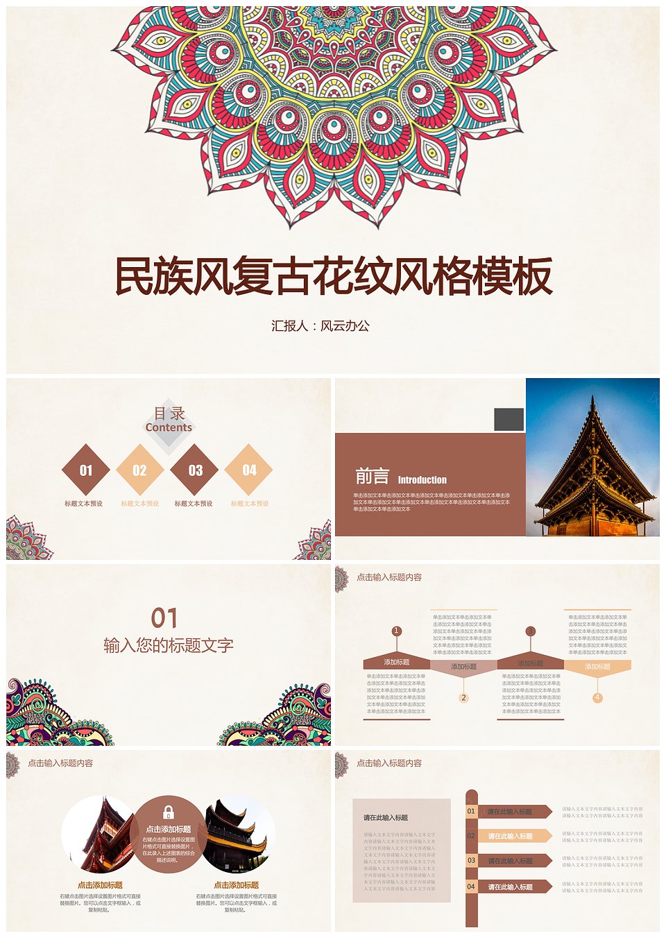 民族风文艺复古花纹风格ppt