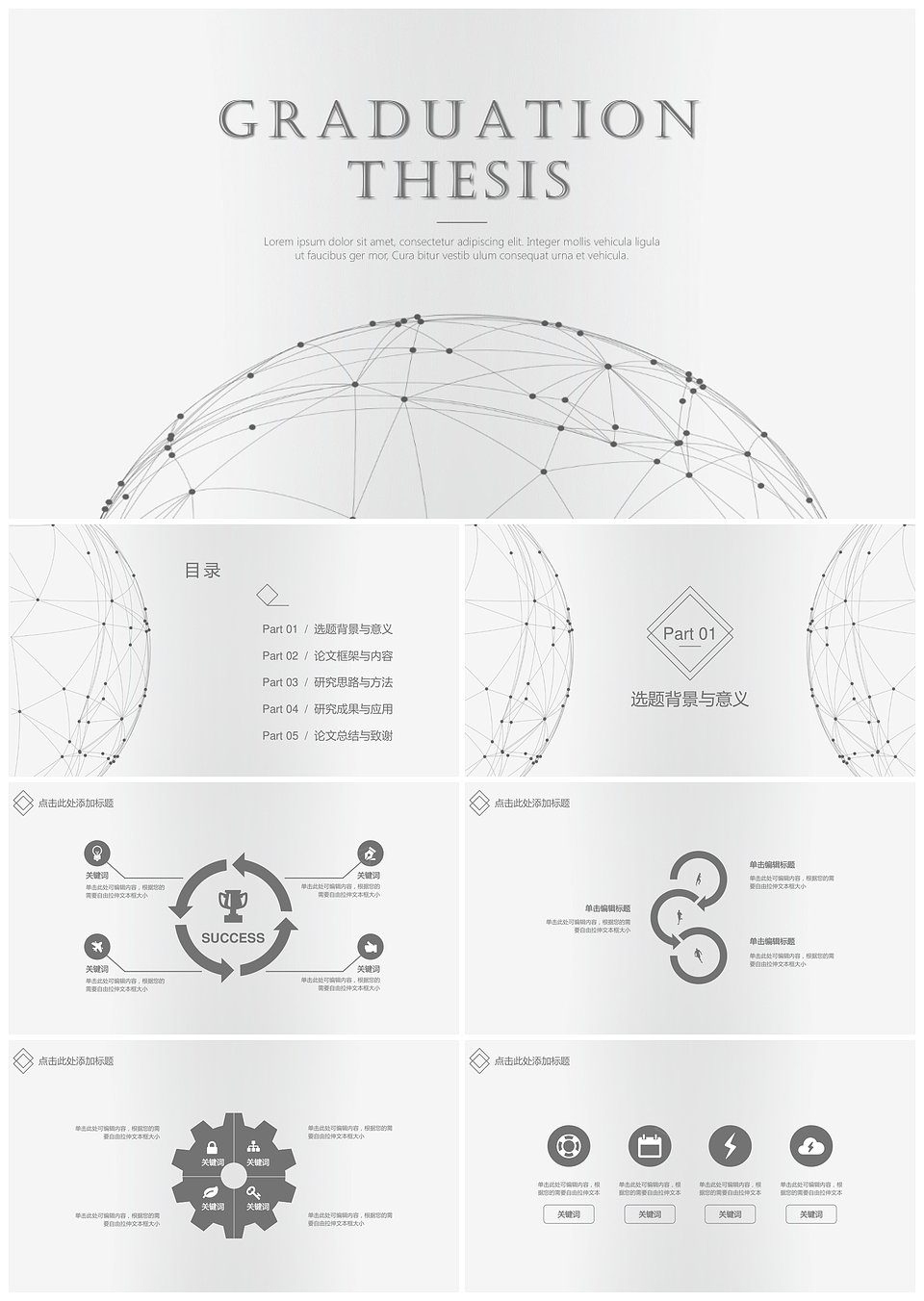 灰色线条科技简约毕业答辩PPT模板