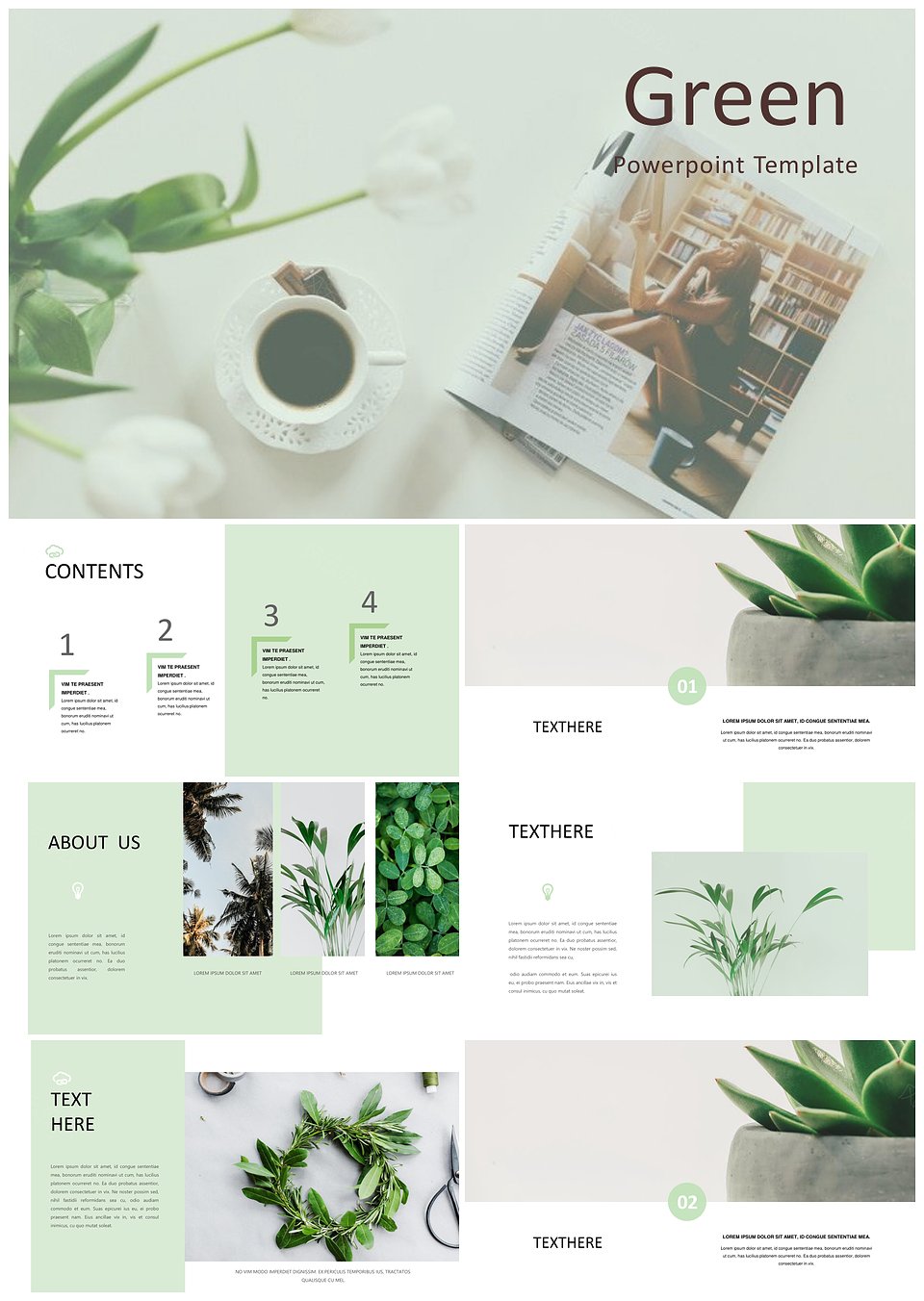 浅绿小清新杂志绿植风PPT模板
