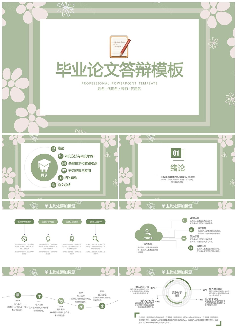 小清新框架完整毕业论文答辩通用动态PPT模板