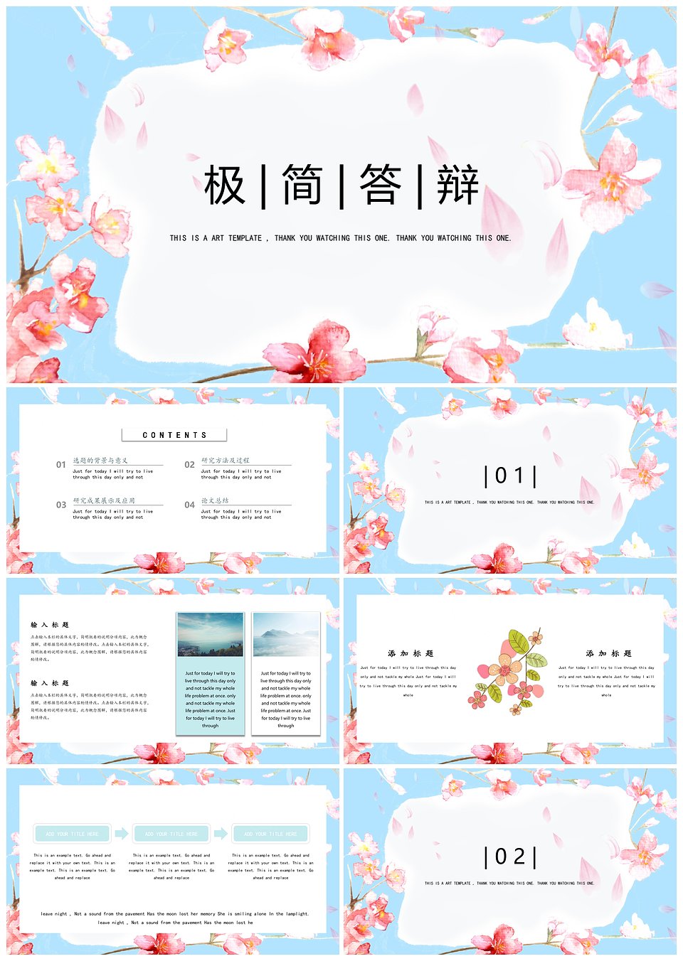 小清新花卉毕业论文答辩毕业设计动态PPT模板