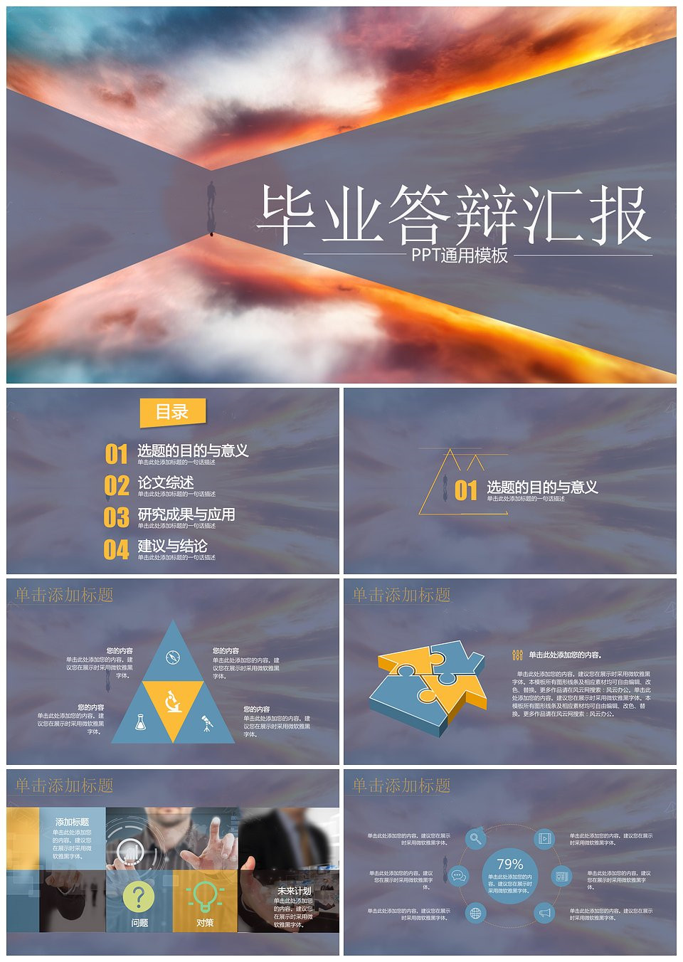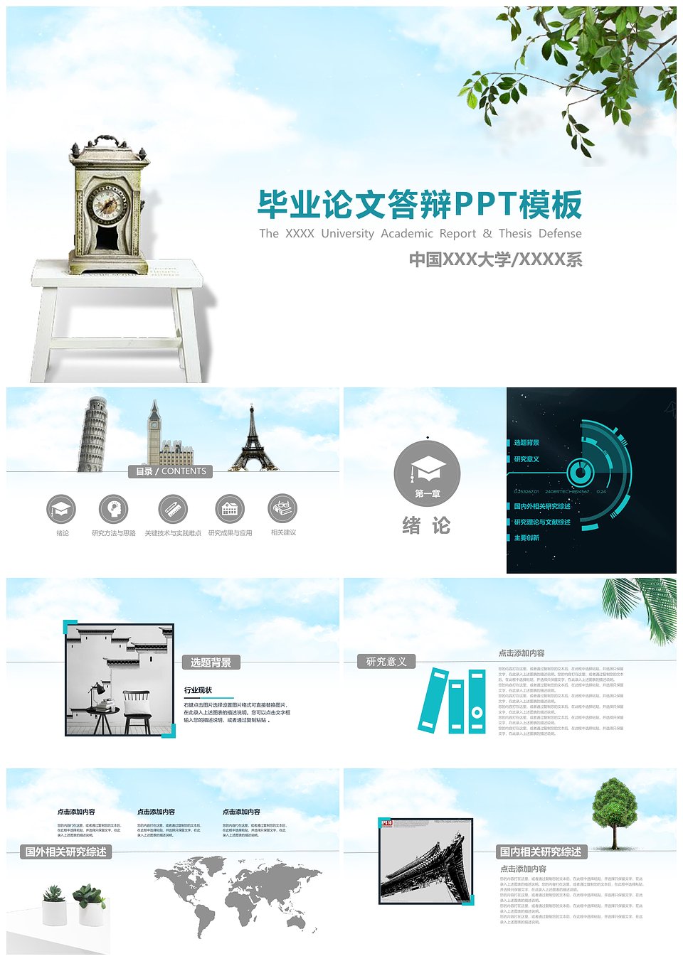天空小清新毕业答辩通用PPT模板