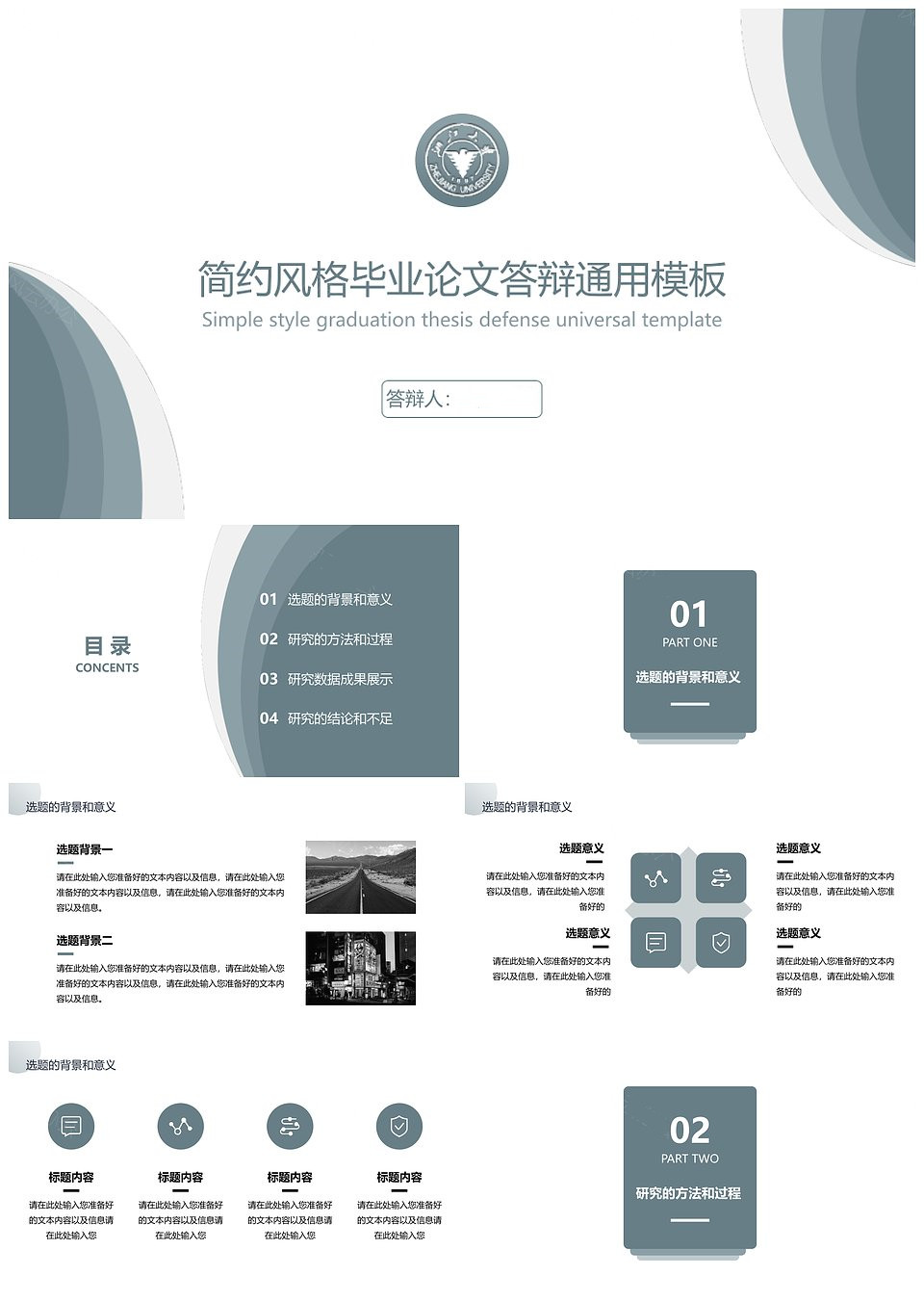 极简答辩全框架PPT模板